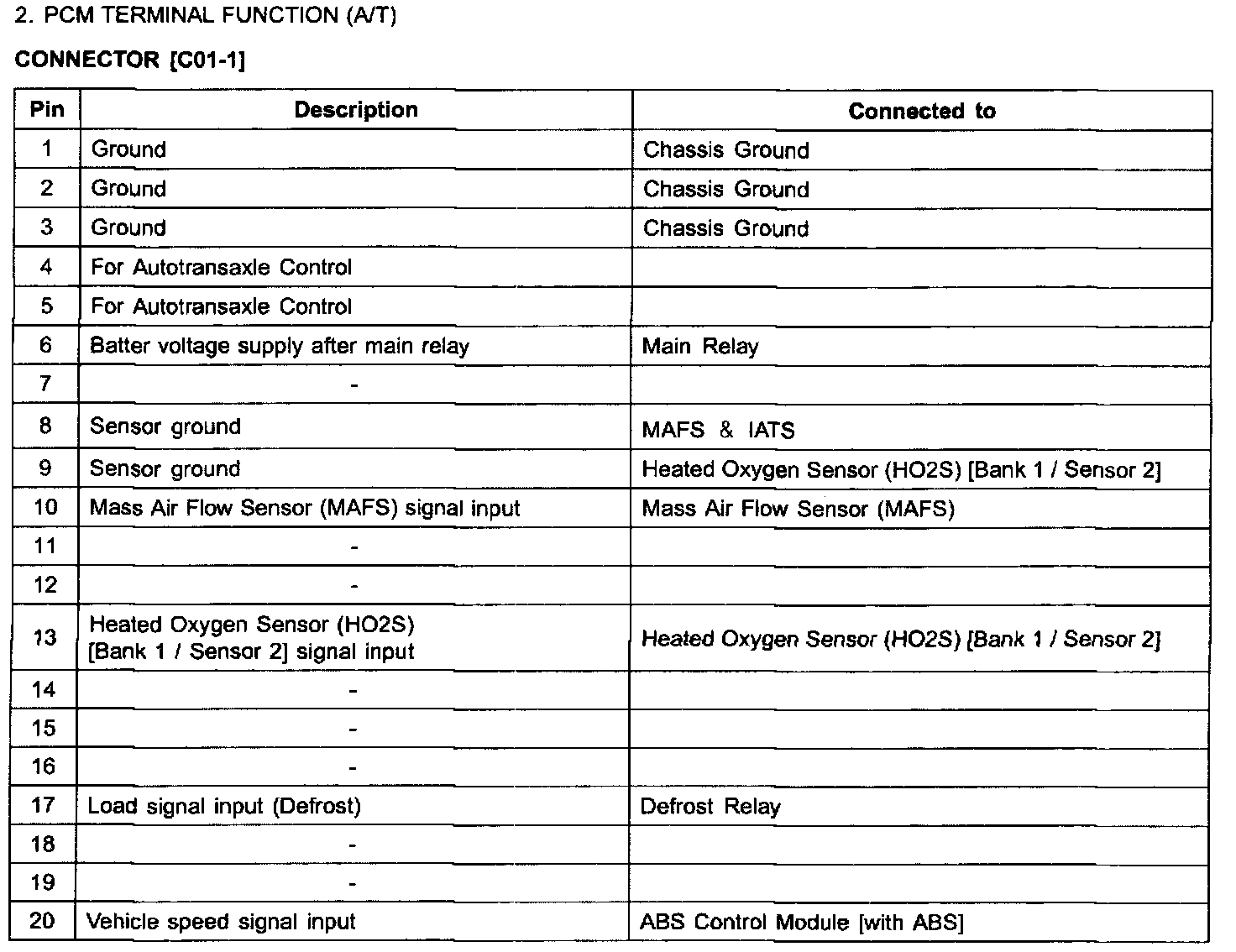 PCM Terminal Function (A/T) - C01-2 (Part 1):
