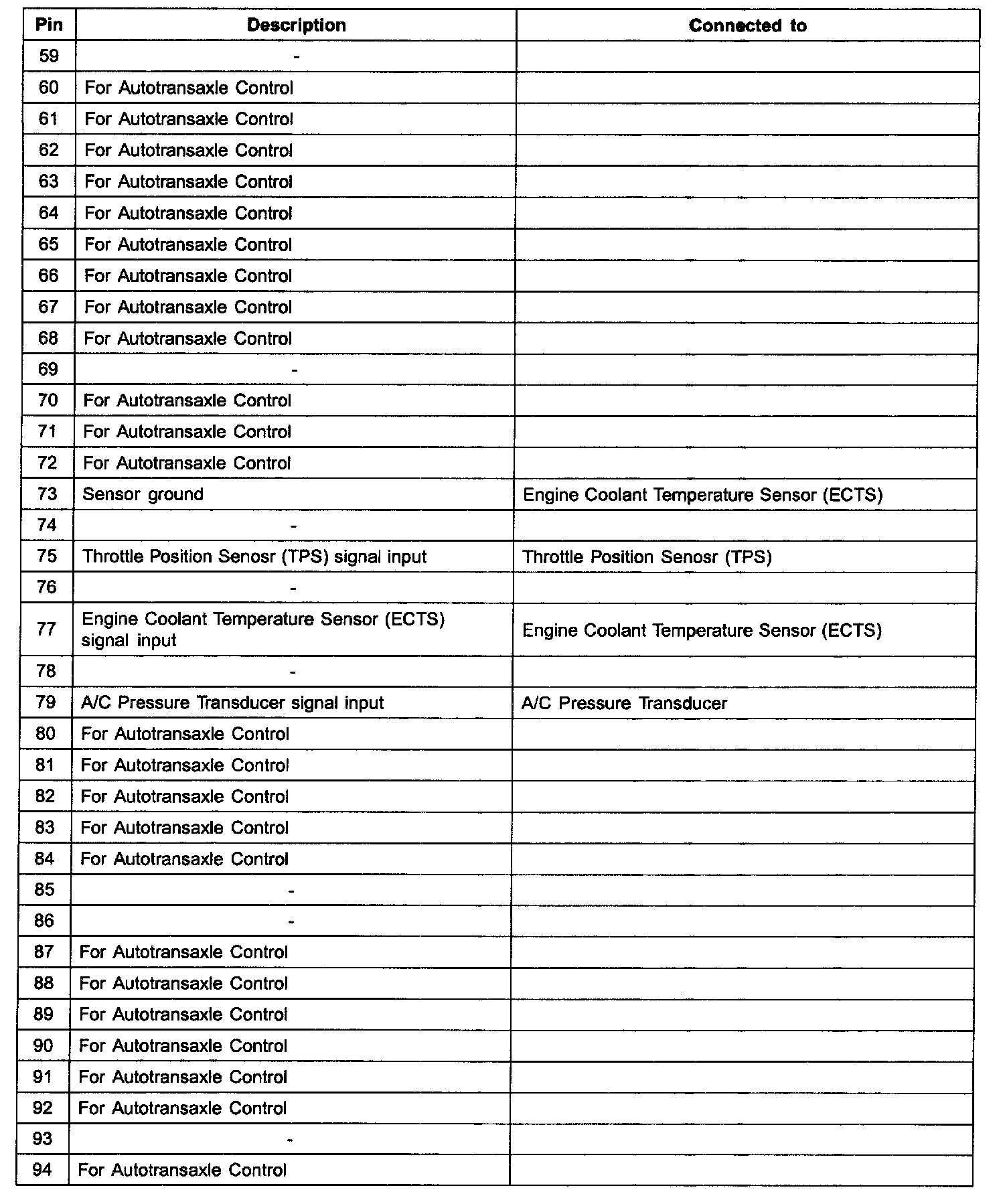PCM Terminal Function (A/T) - C01-1 (Part 3):