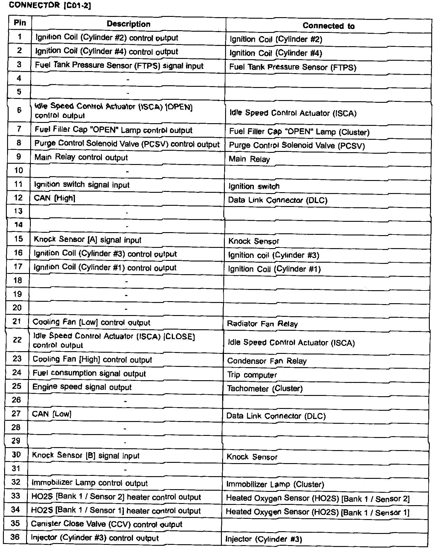 PCM TERMINAL FUNCTION (A/T) - CONNECTOR [C01-2]