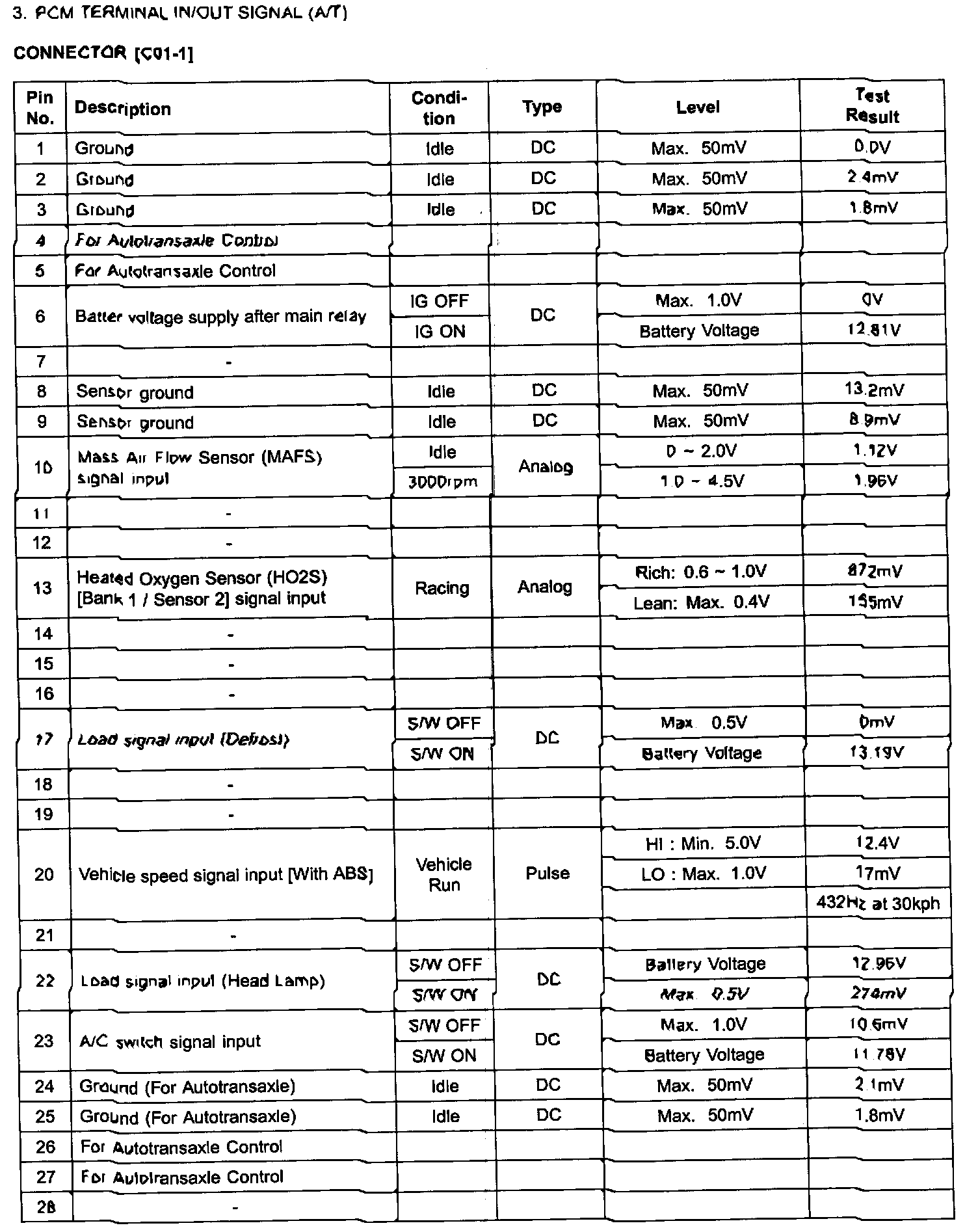 PCM Terminal In/Out Signal (A/T) - C01-1 (Part 3):