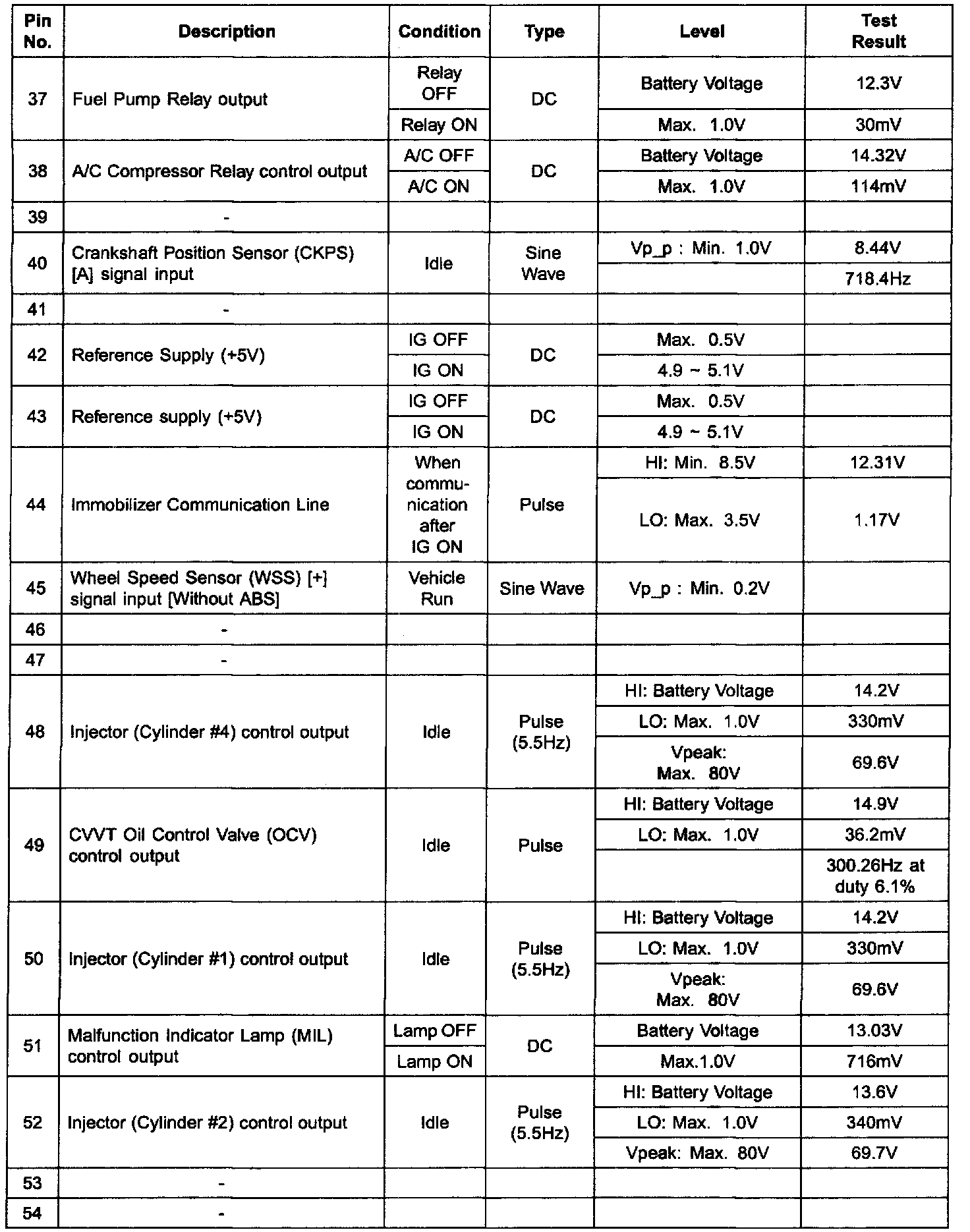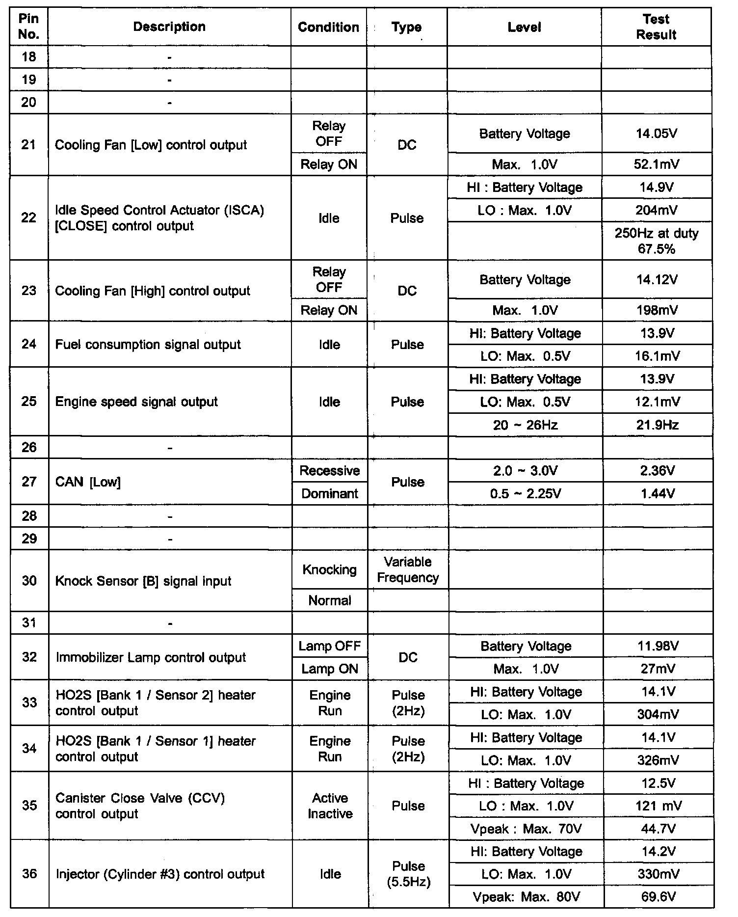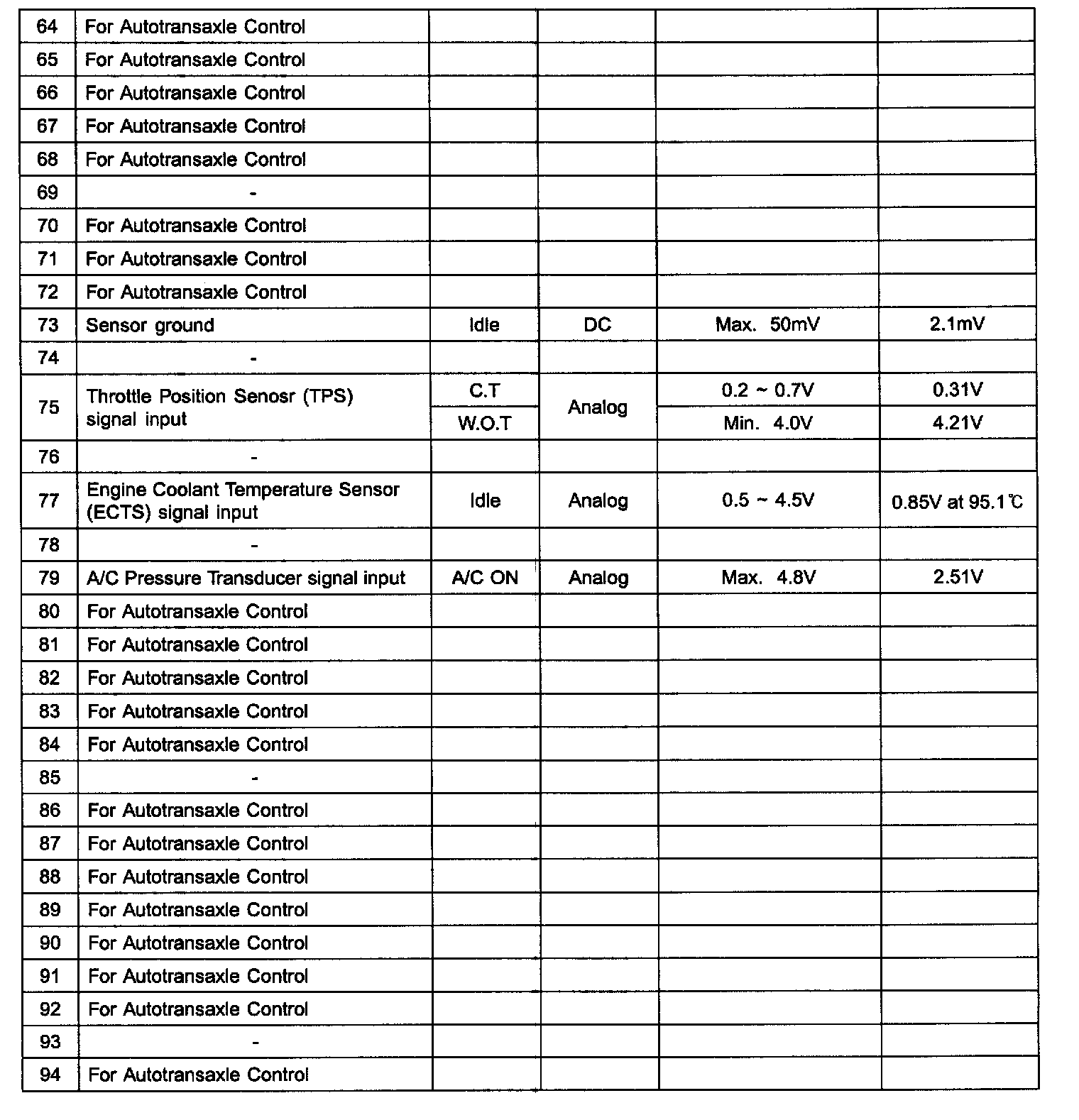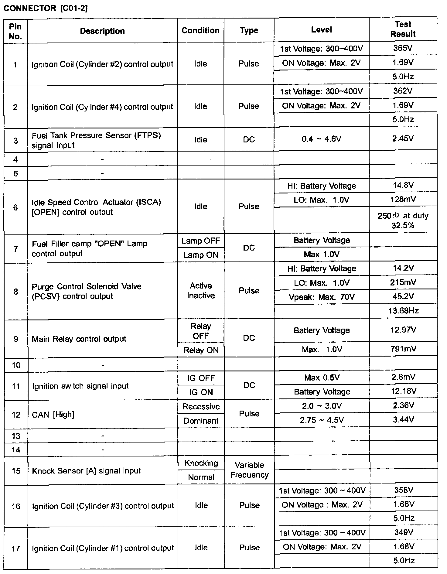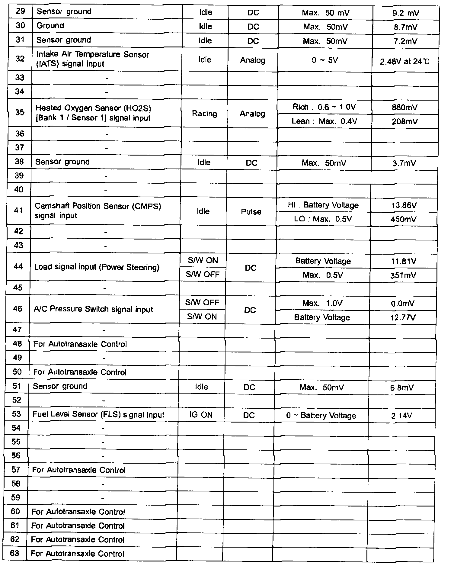 PCM Terminal In/Out Signal (A/T) - C01-2 (Part 4):