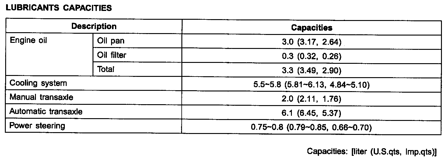 Lubricants Capacities: