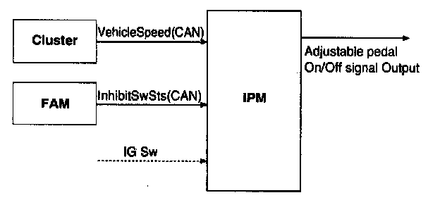 1. Adjust Pedal allows to activate Adjustable Pedal feature for the non-IMS equipped vehicle, IPM needs control the power source (by relay coil control) of the adjustable Pedal switch unit.