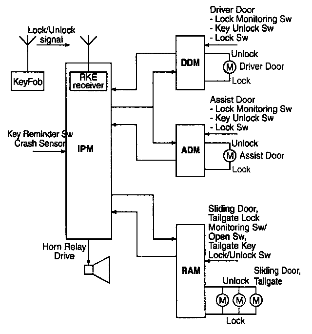 - RAM will pass this signal to LH PSD and RH PSD then the burglar alarm state is decided depending on the vehicle condition.