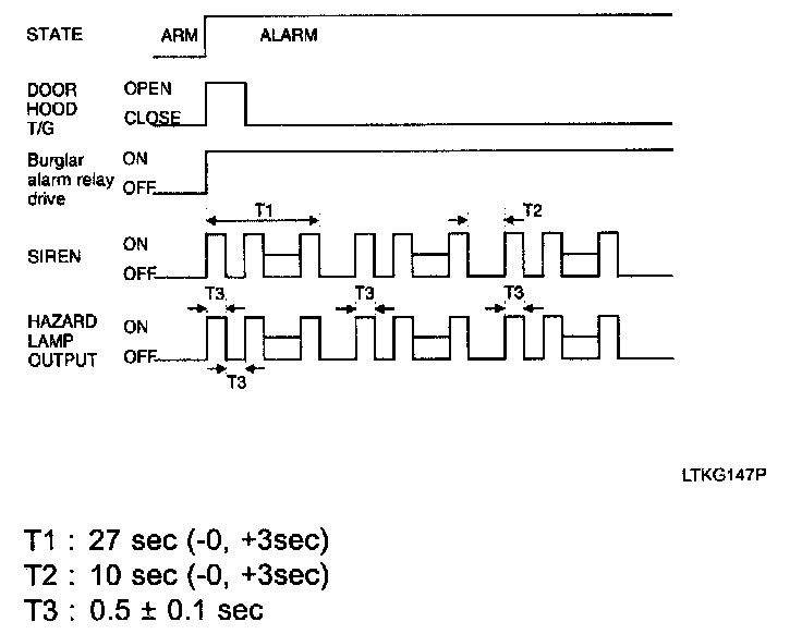 - Hazard lamp flashes one time for 1 second depending on the burglar alarm state.