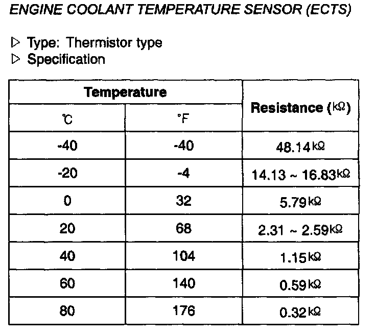 Coolant Temperature Sensor/Switch (For Computer): Specifications