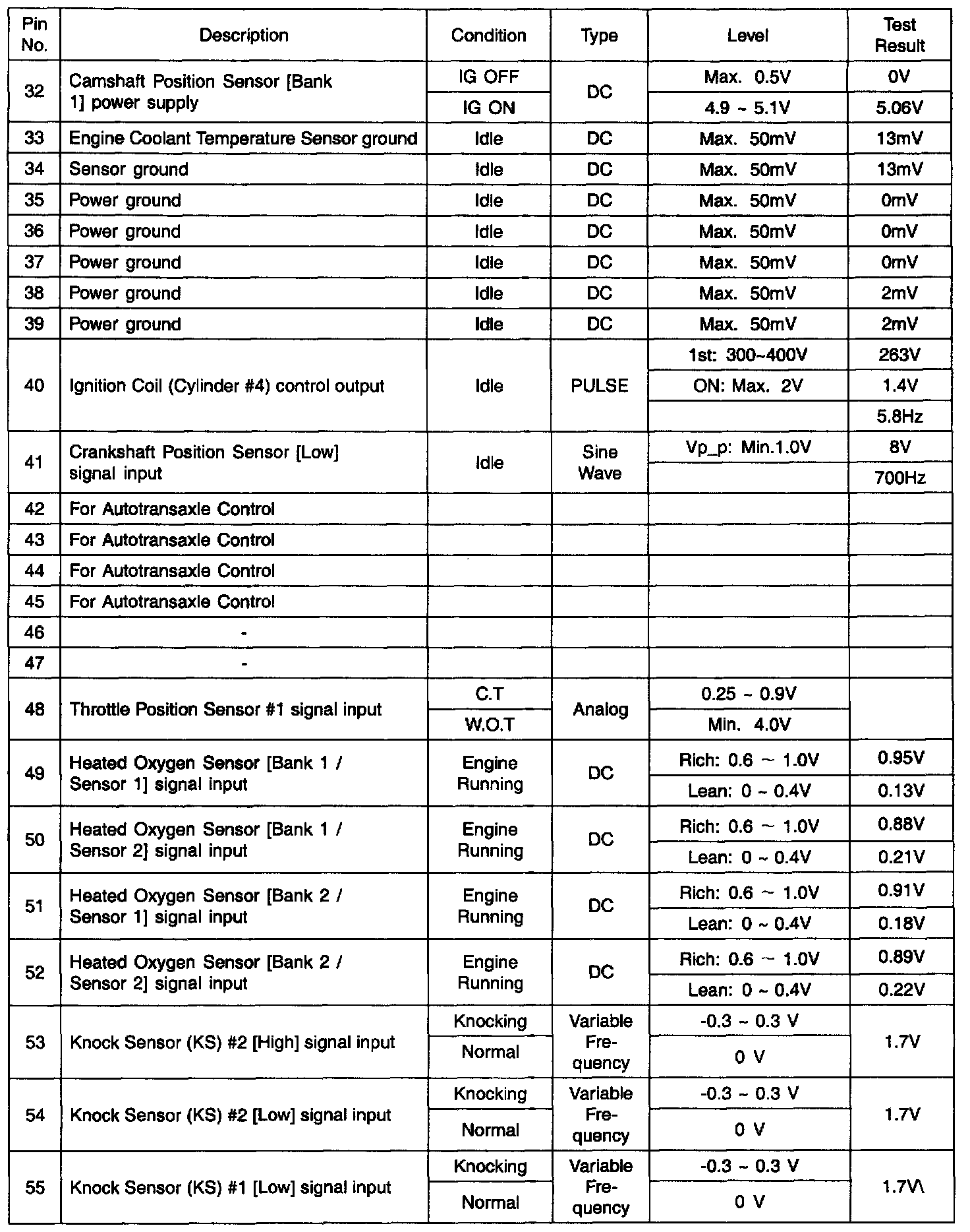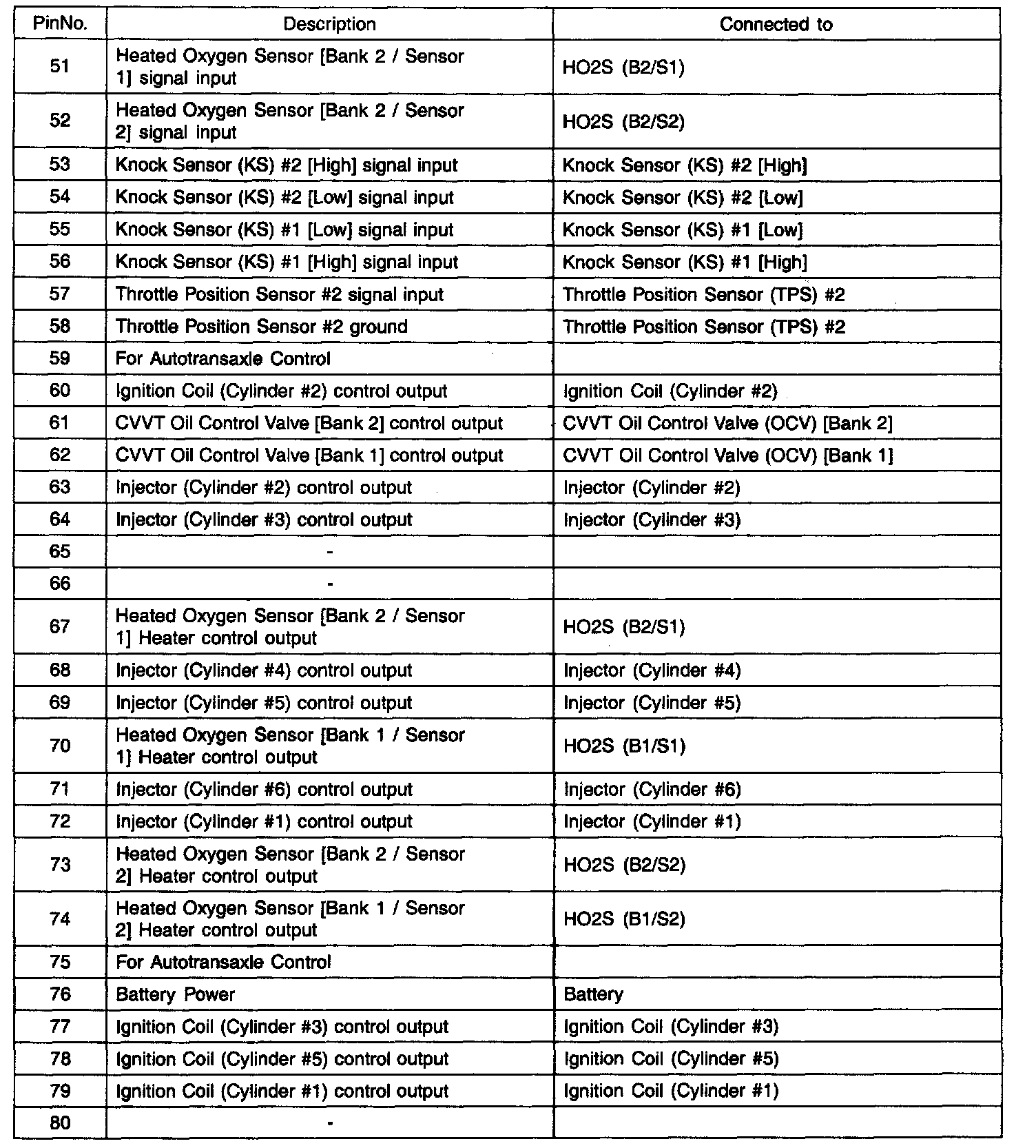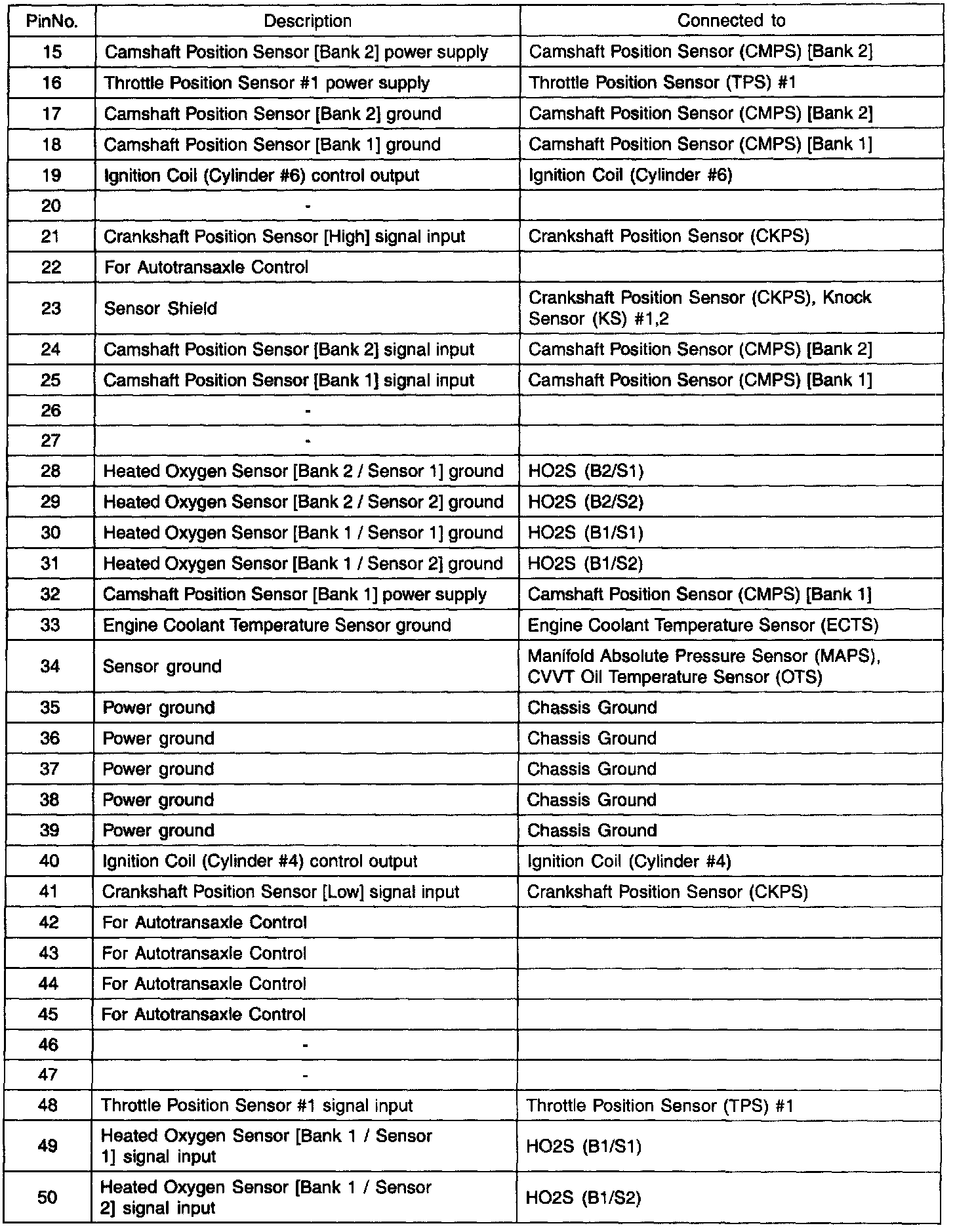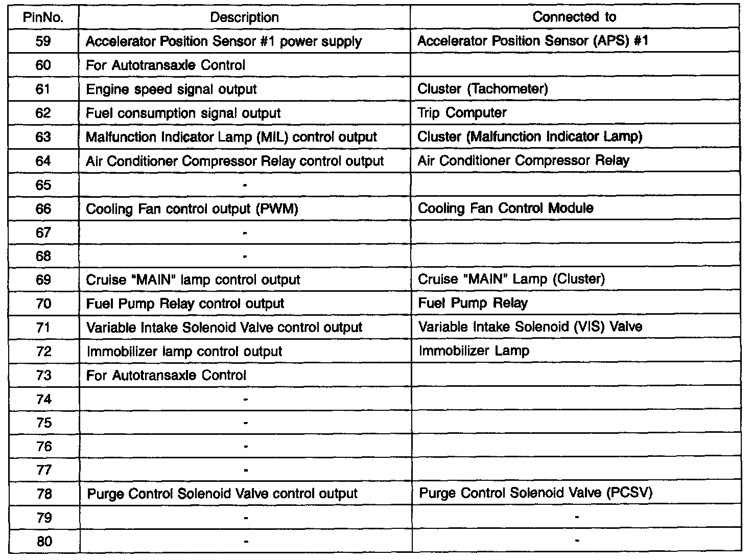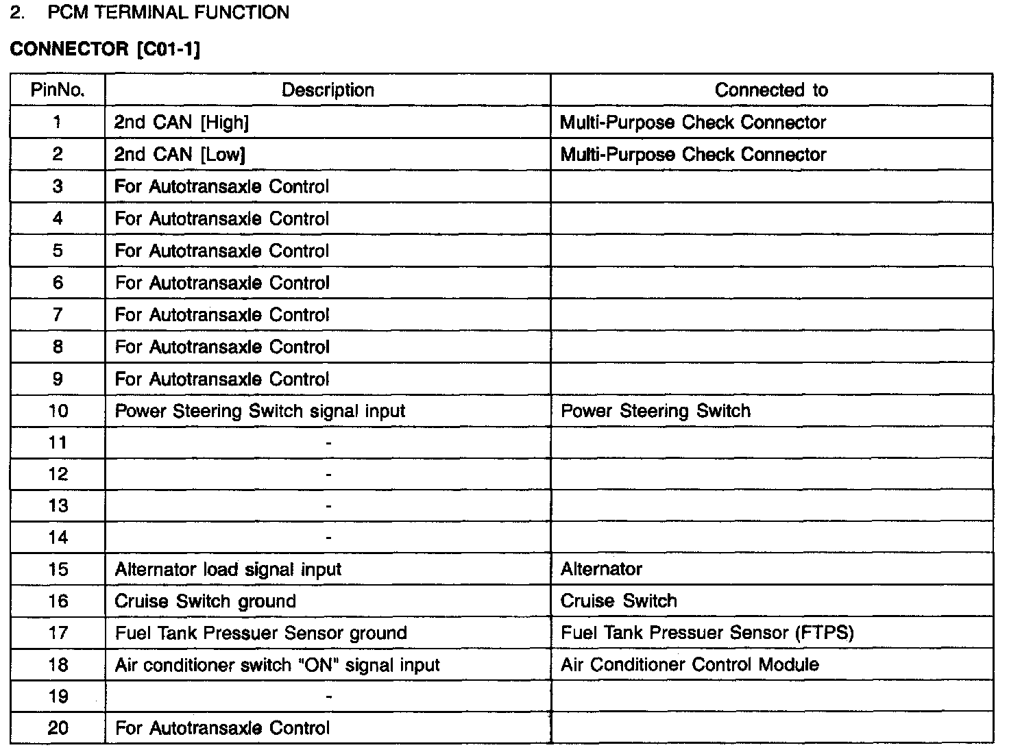 PCM Terminal Function - Connector (CO1-2)