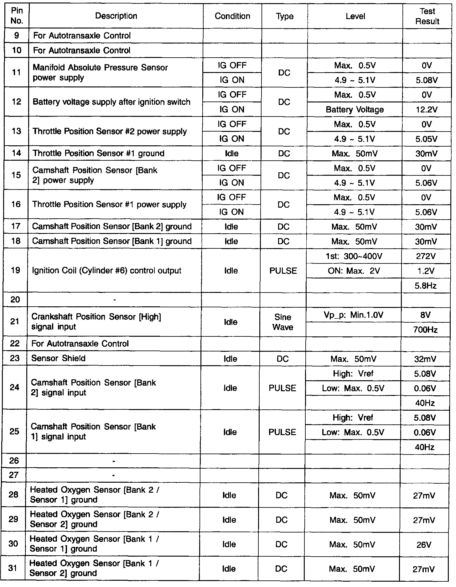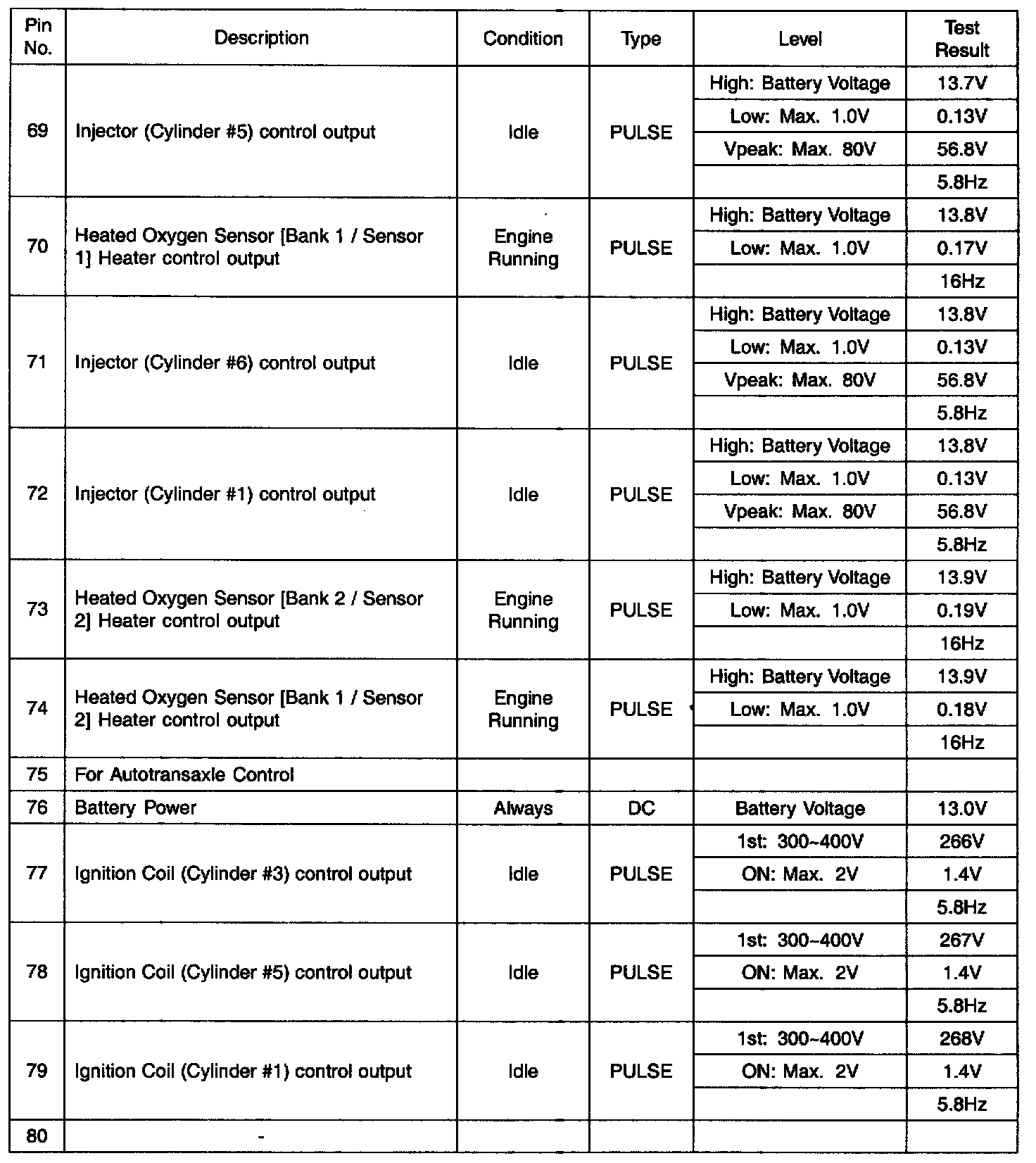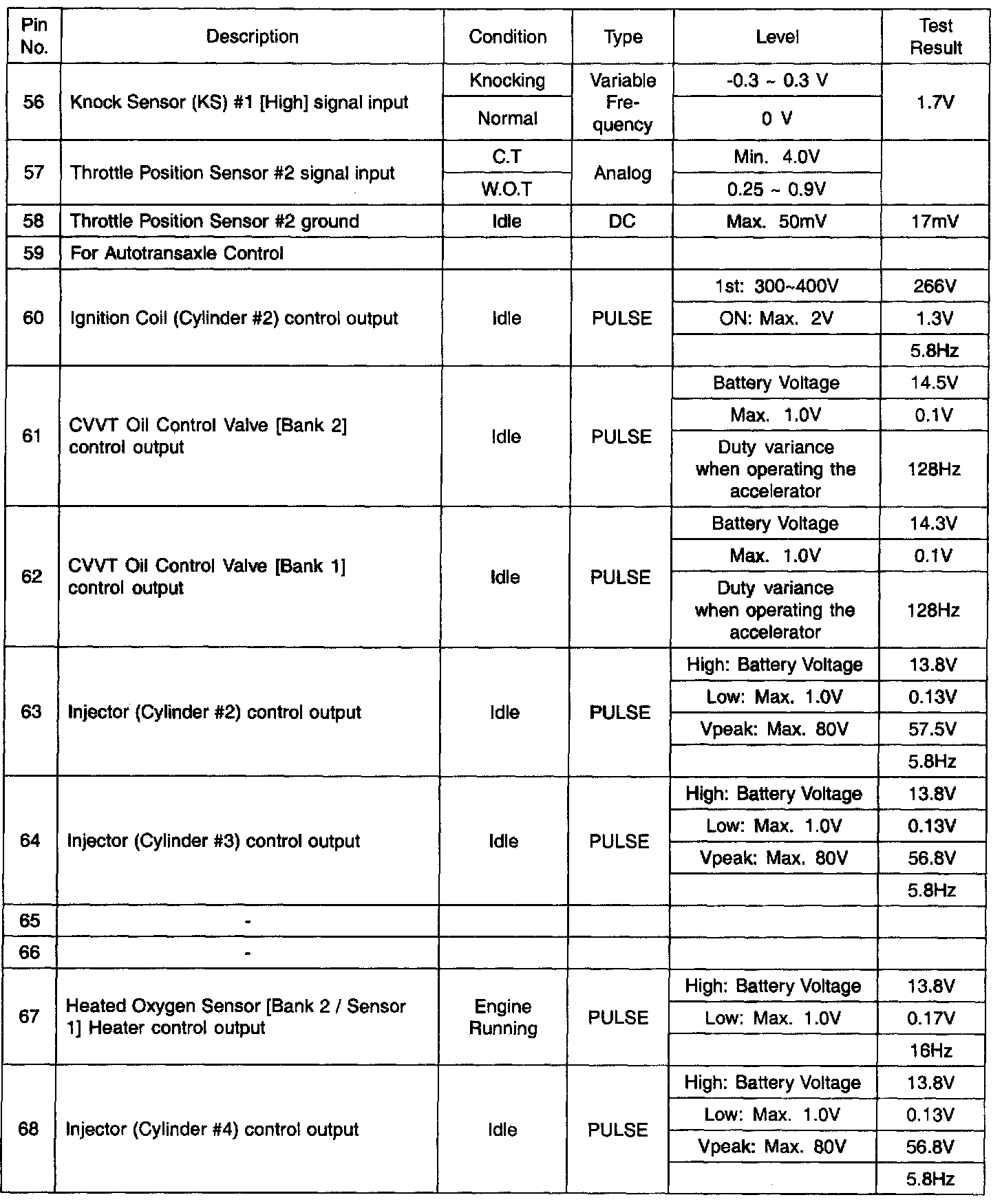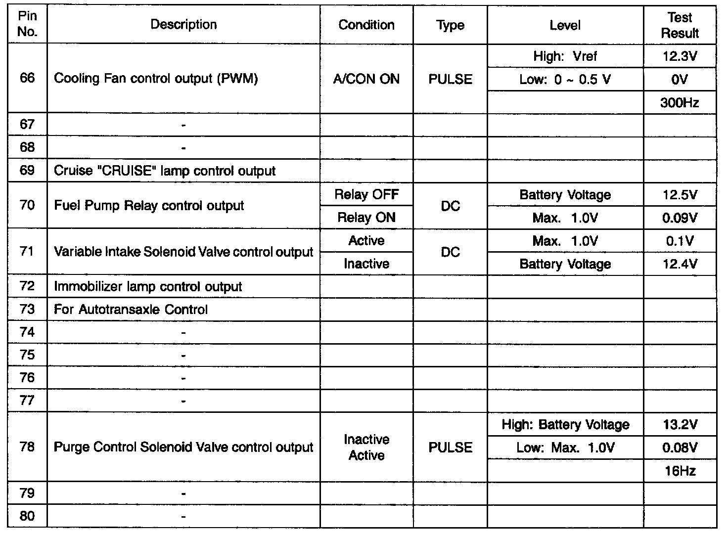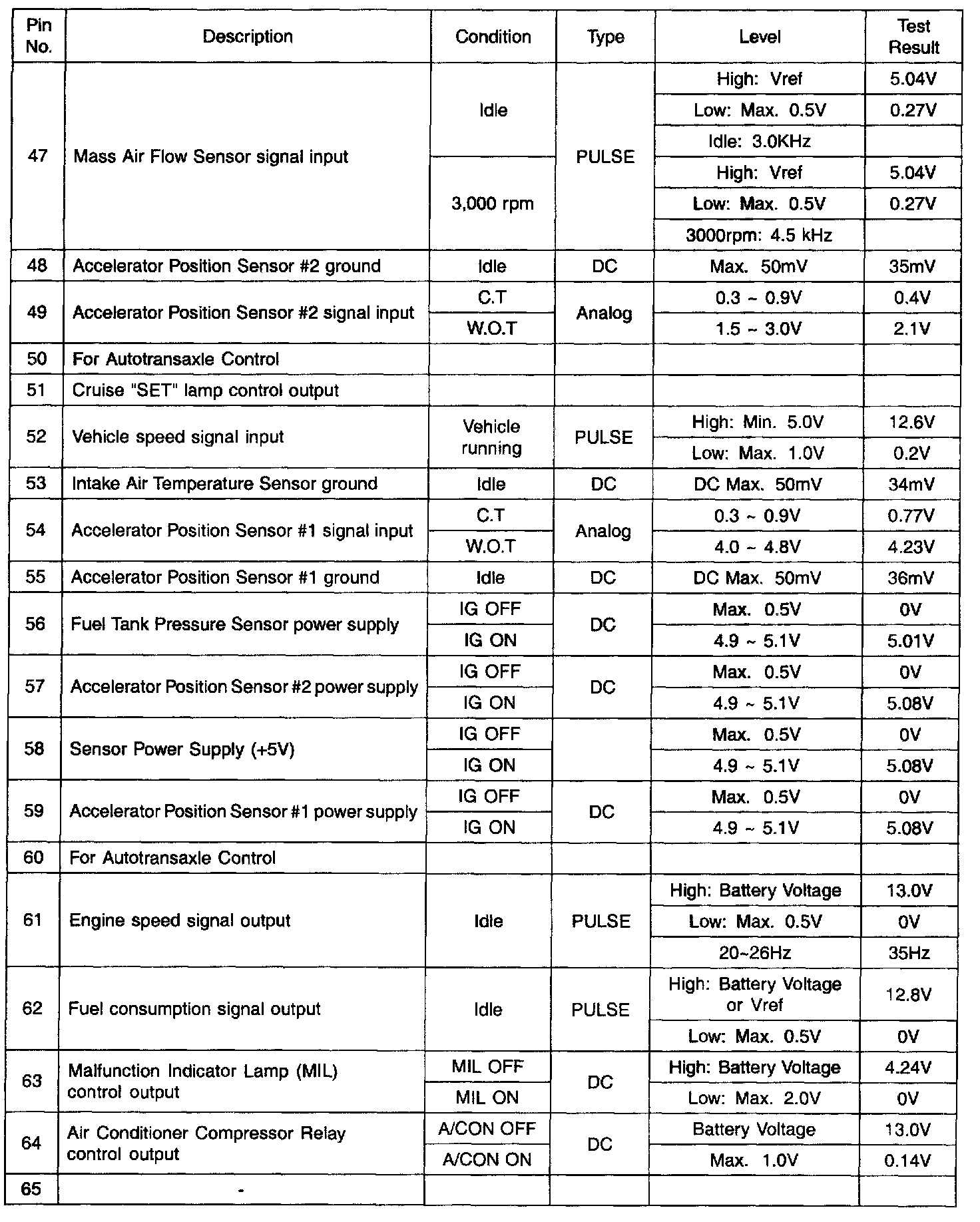 PCM Terminal Function - Connector (CO1-2)