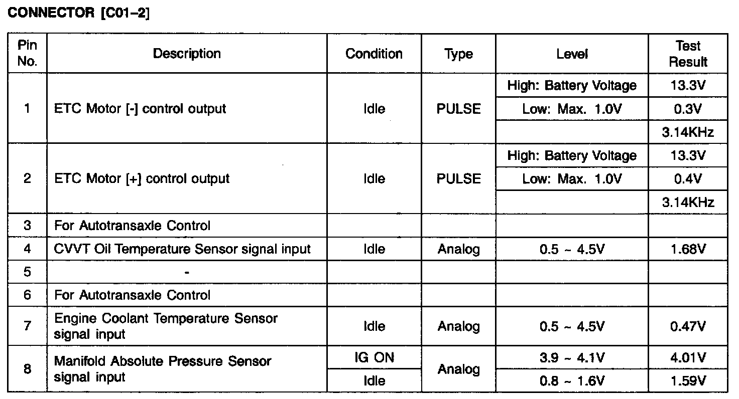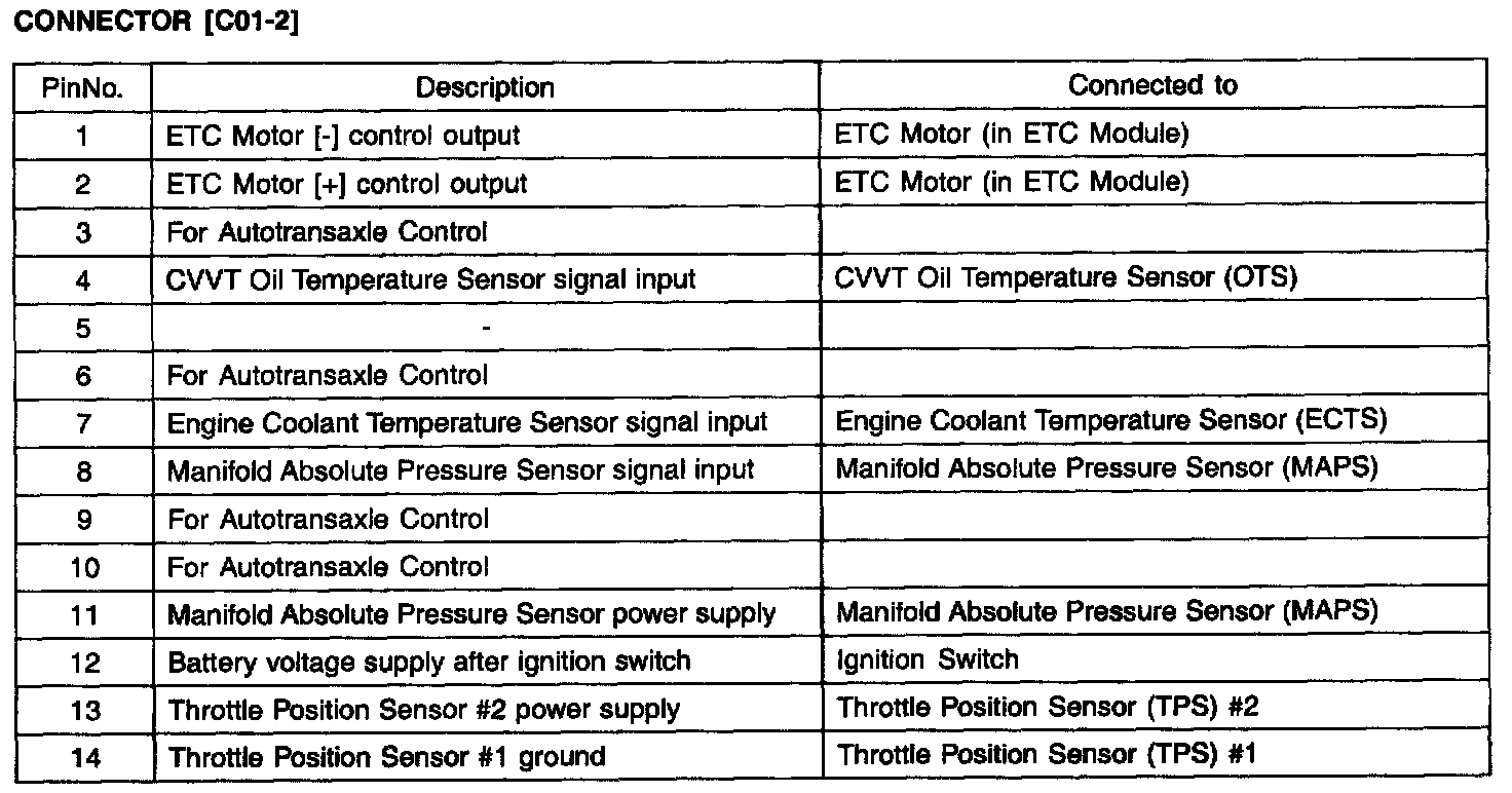 PCM Terminal Input/Output Signal - Connector (C01-2)