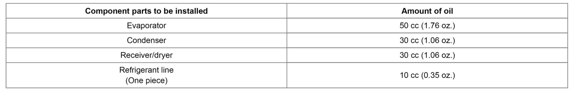 When replacing the system component parts, supply the given amount of oil to the component parts to be installed.