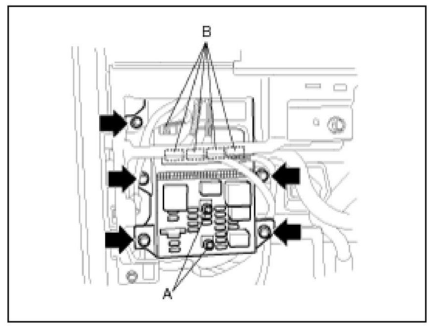 7. Remove the ETACM (A) after disconnecting the connector.