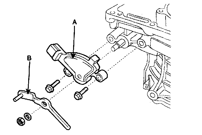7. Remove the inhibitor switch (A) and manual control lever (B).