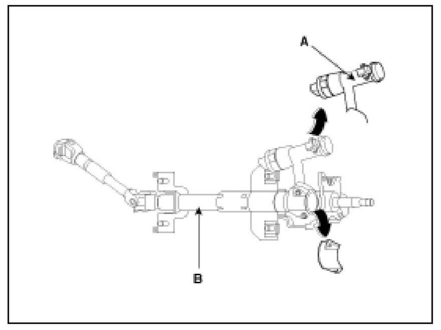 3. Disassembly the key lock assembly (A) from the steering column and shaft assembly (B).