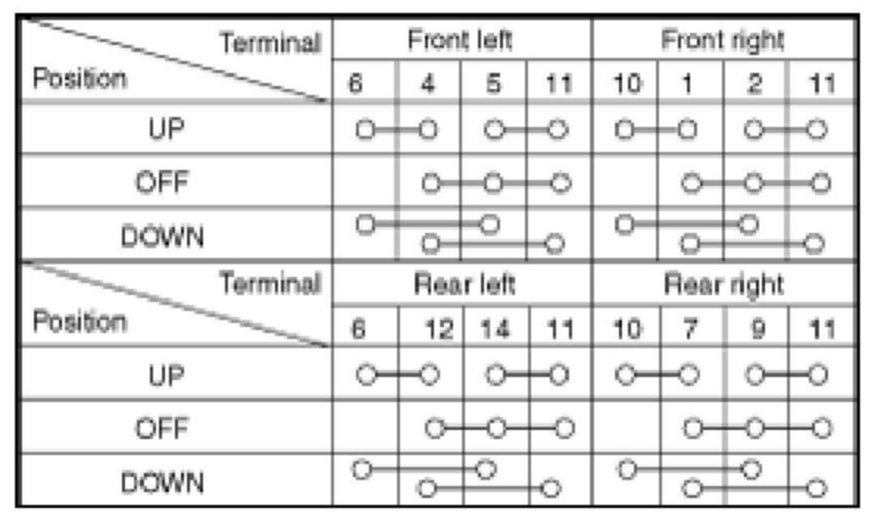 Home >> Kia >> 2006 >> Spectra L4-2.0L >> Repair and Diagnosis >> Windows and Glass >> Windows >> Power Window Switch >> Testing and Inspection >> Main Switch
