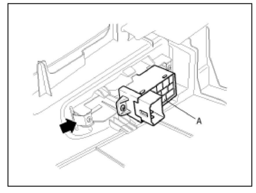2. Remove the power window sub switch (A) by pushing the fixation clip of the power window sub switch.