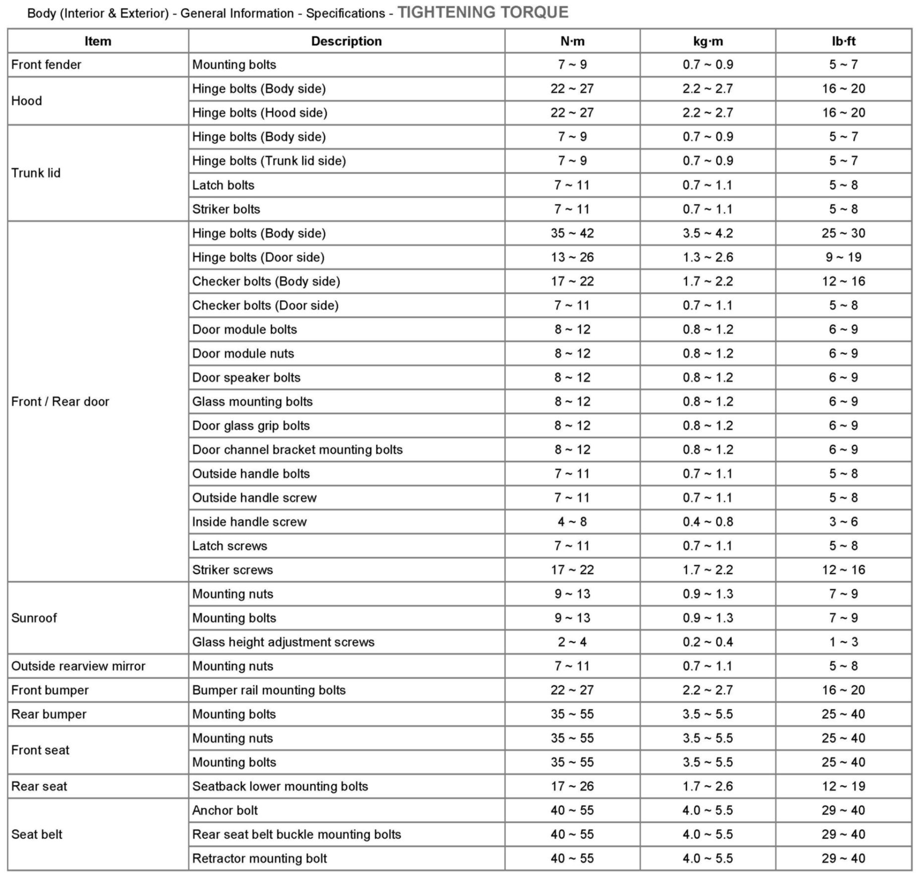 Tightening Torque: