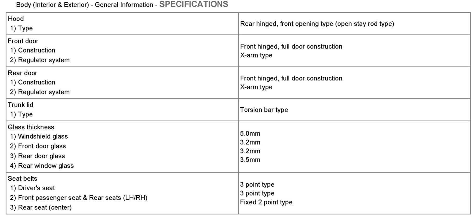 Body and Frame: Specifications