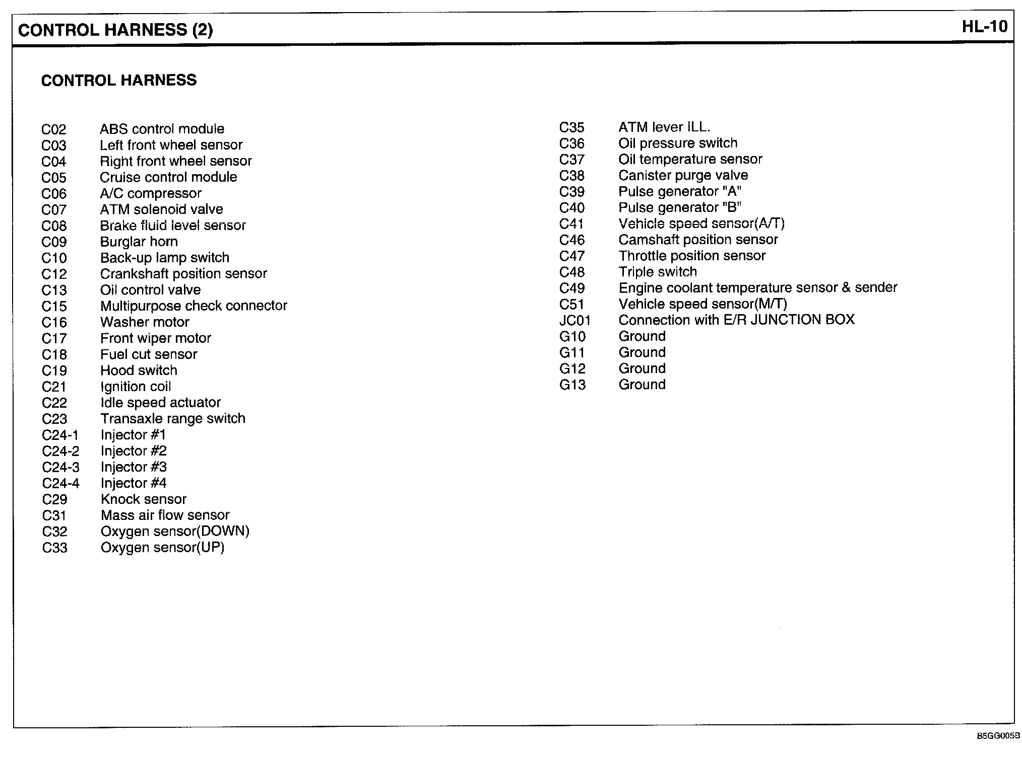 Control Harness Index: