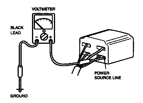 The DC voltmeter measures circuit voltage. A voltmeter with a range of 1.5 V or more is used by connecting the positive (+) probe (red lead wire) to the point where voltage is be measured and the negative (-) probe (black lead wire) to a body ground