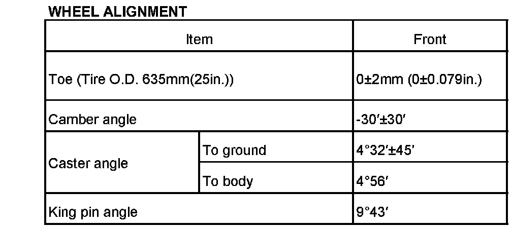 Front Wheel Alignment Specifications