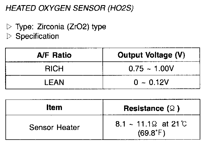 Heated Oxygen Sensor (HO2S) - Specification:
