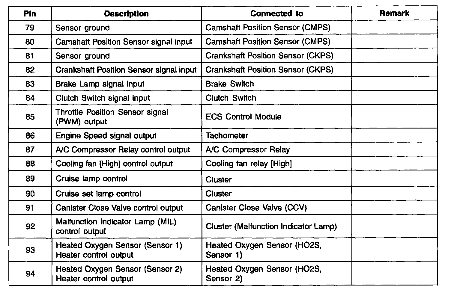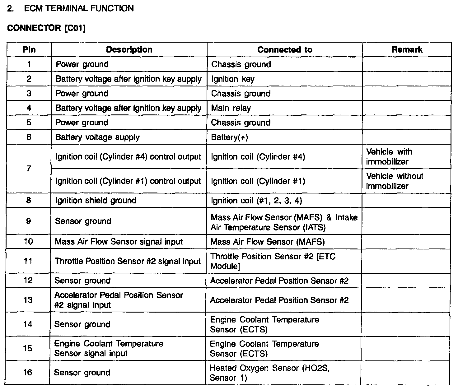ECM Terminal Function - Connector (CO1)