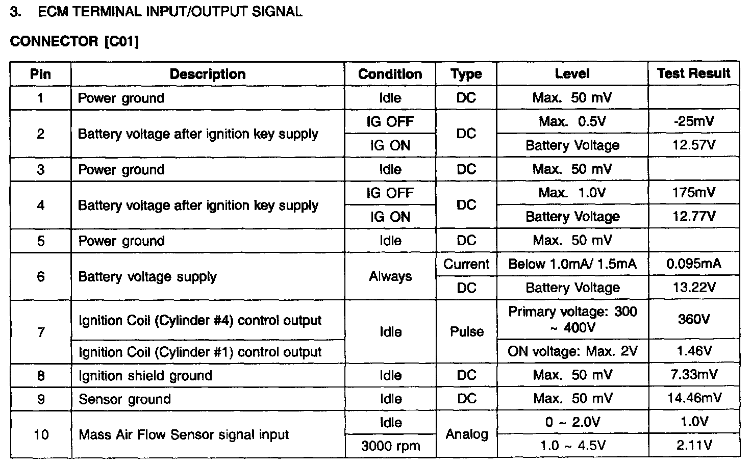 ECM Terminal Input/Output Signal - Connector (C01)