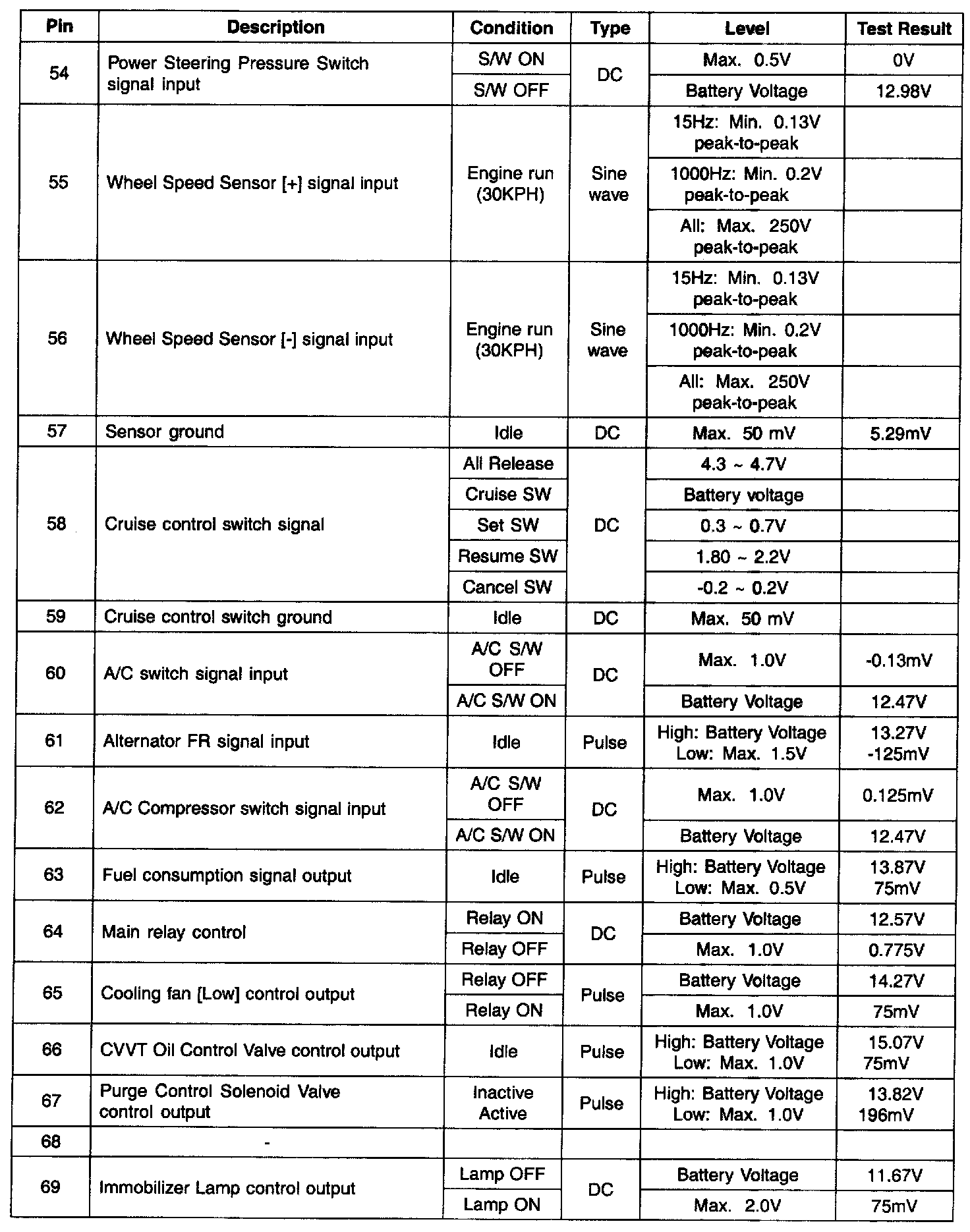 ECM Terminal Input/Output Signal - C01 (Part 5):