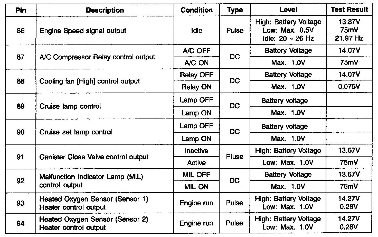 ECM Terminal Input/Output Signal - C01 (Part 4):