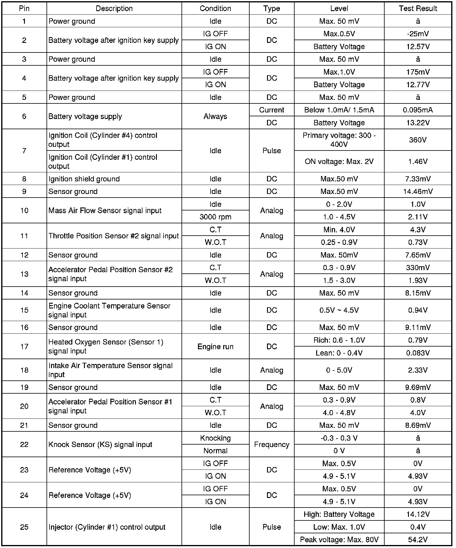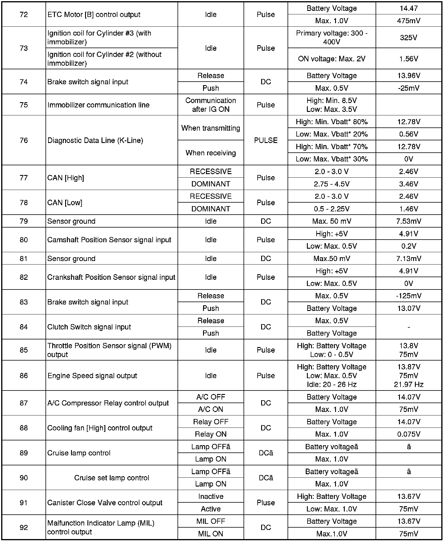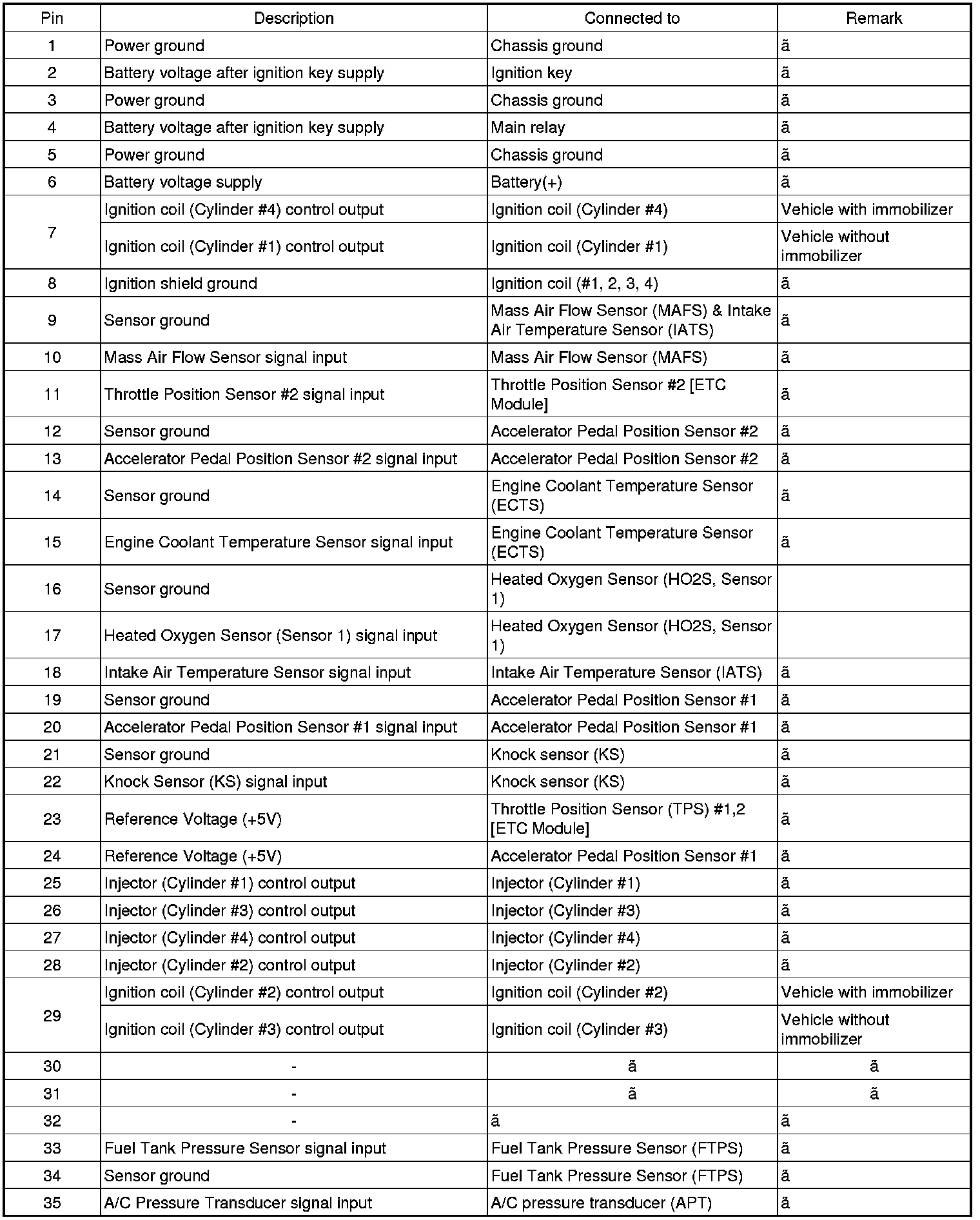 ECM TERMINAL INPUT/OUTPUT SIGNAL
