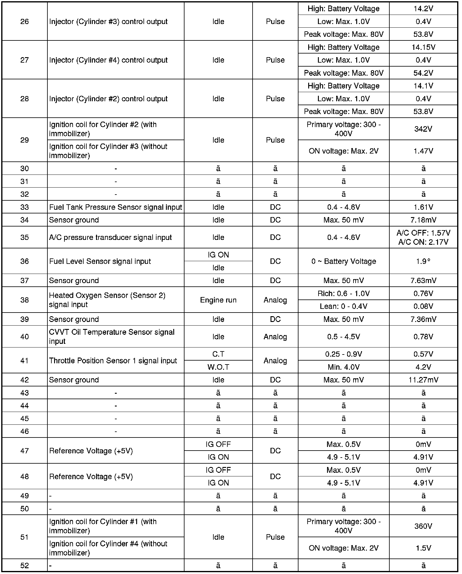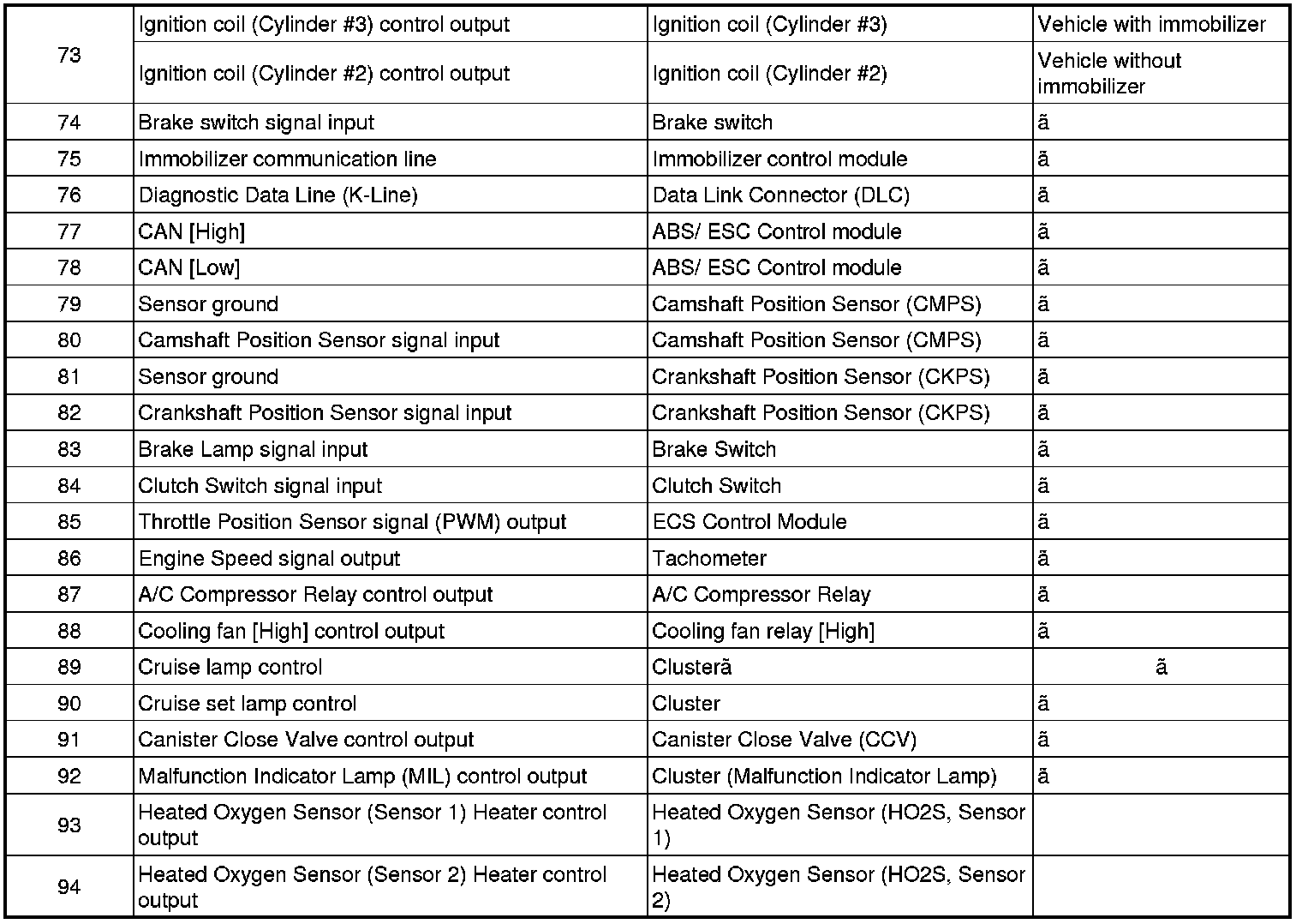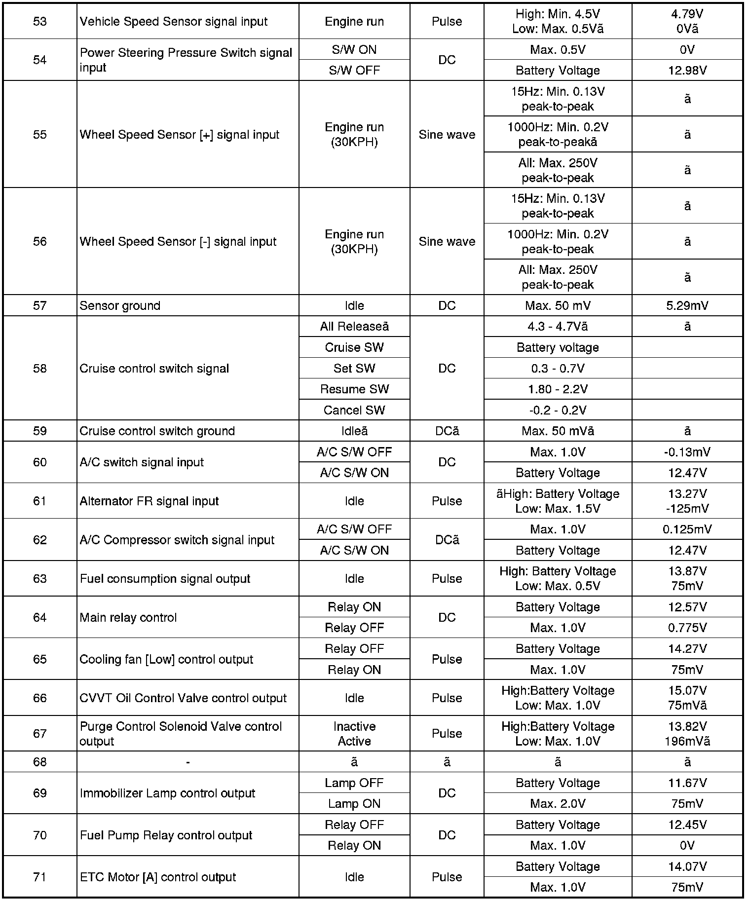 ECM TERMINAL INPUT/OUTPUT SIGNAL
