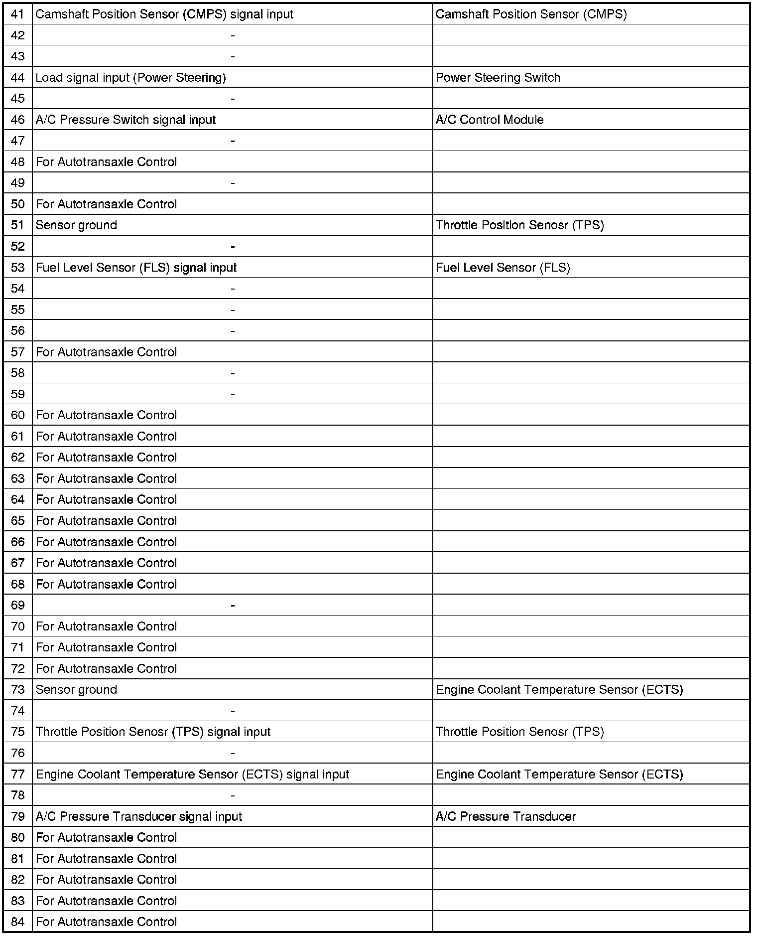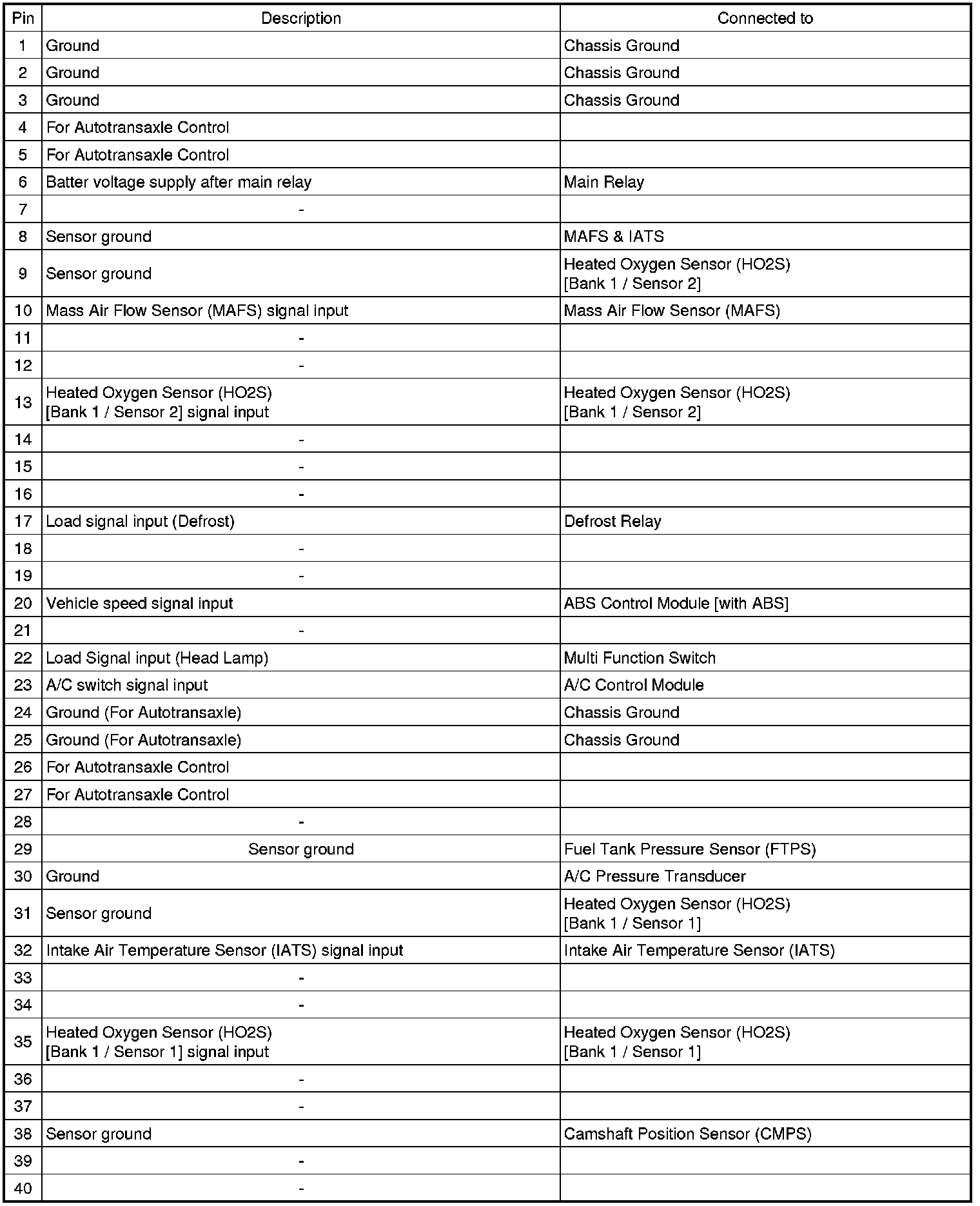 2. PCM TERMINAL FUNCTION (A/T)