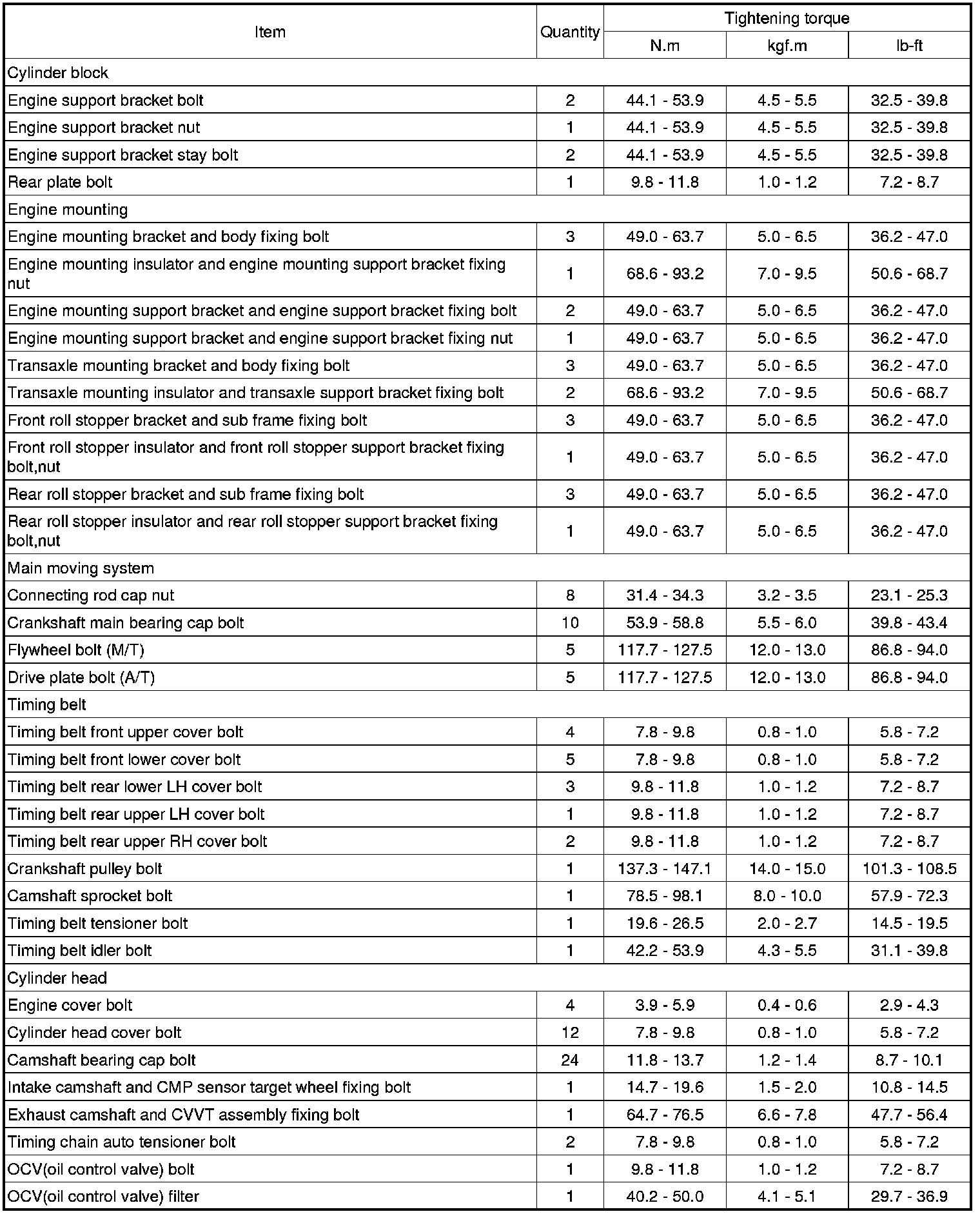 TIGHTENING TORQUE