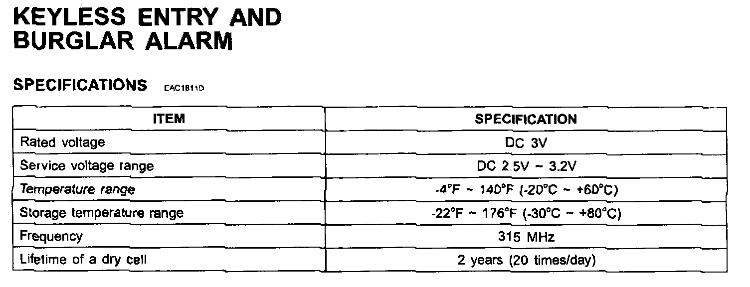 Keyless Entry And Burglar Alarm - Specifications: