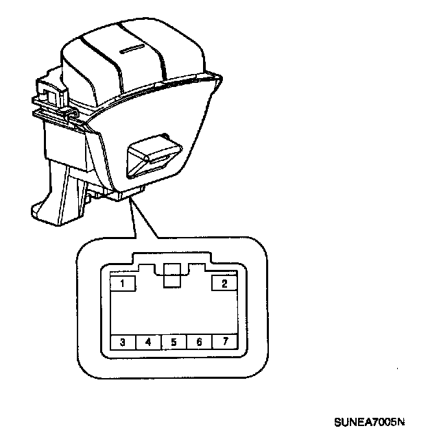 2. Measure resistance between terminals on the control switch when each function switch is ON (switch is depressed).