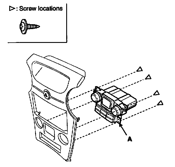 2. After loosening the heater control mounting screws, remove the heater control unit (A).