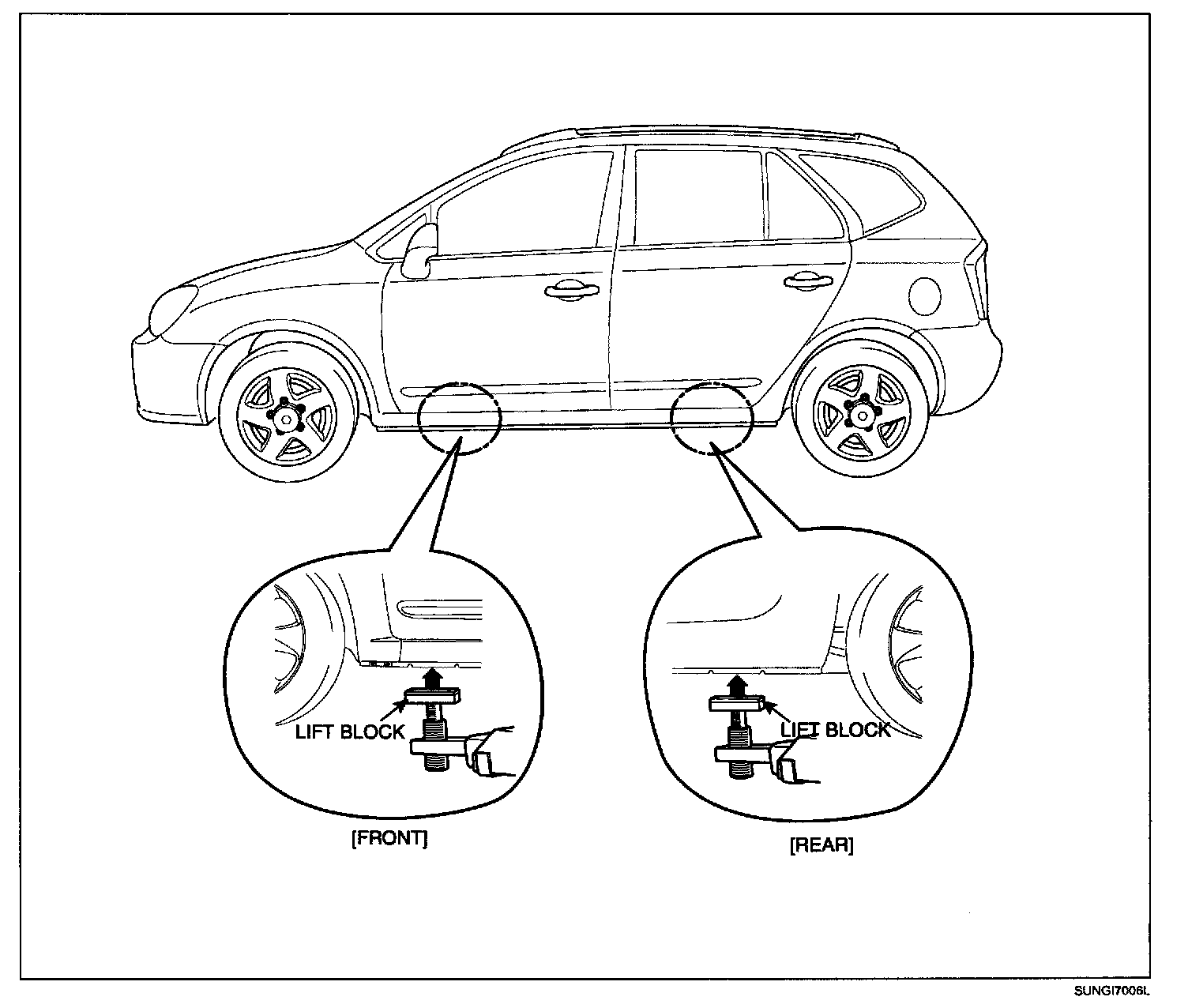 1. Place the lift blocks under the support points as shown in the illustration.