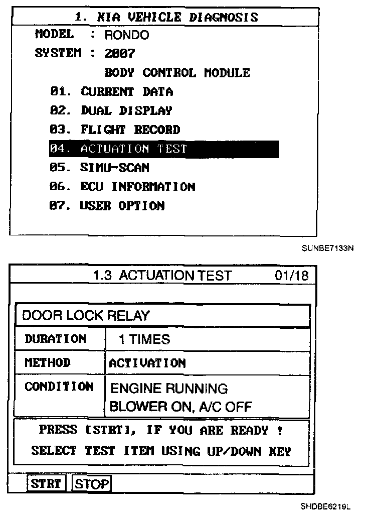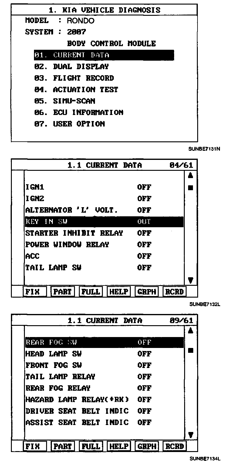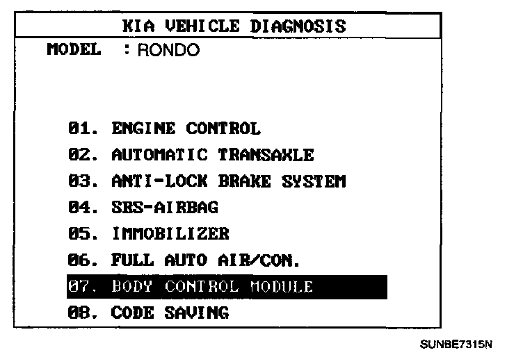 Home >> Kia >> 2007 >> Rondo L4-2.4L >> Repair and Diagnosis >> Powertrain Management >> Computers and Control Systems >> Body Control Module >> Testing and Inspection >> Scan Tool Testing and Procedures