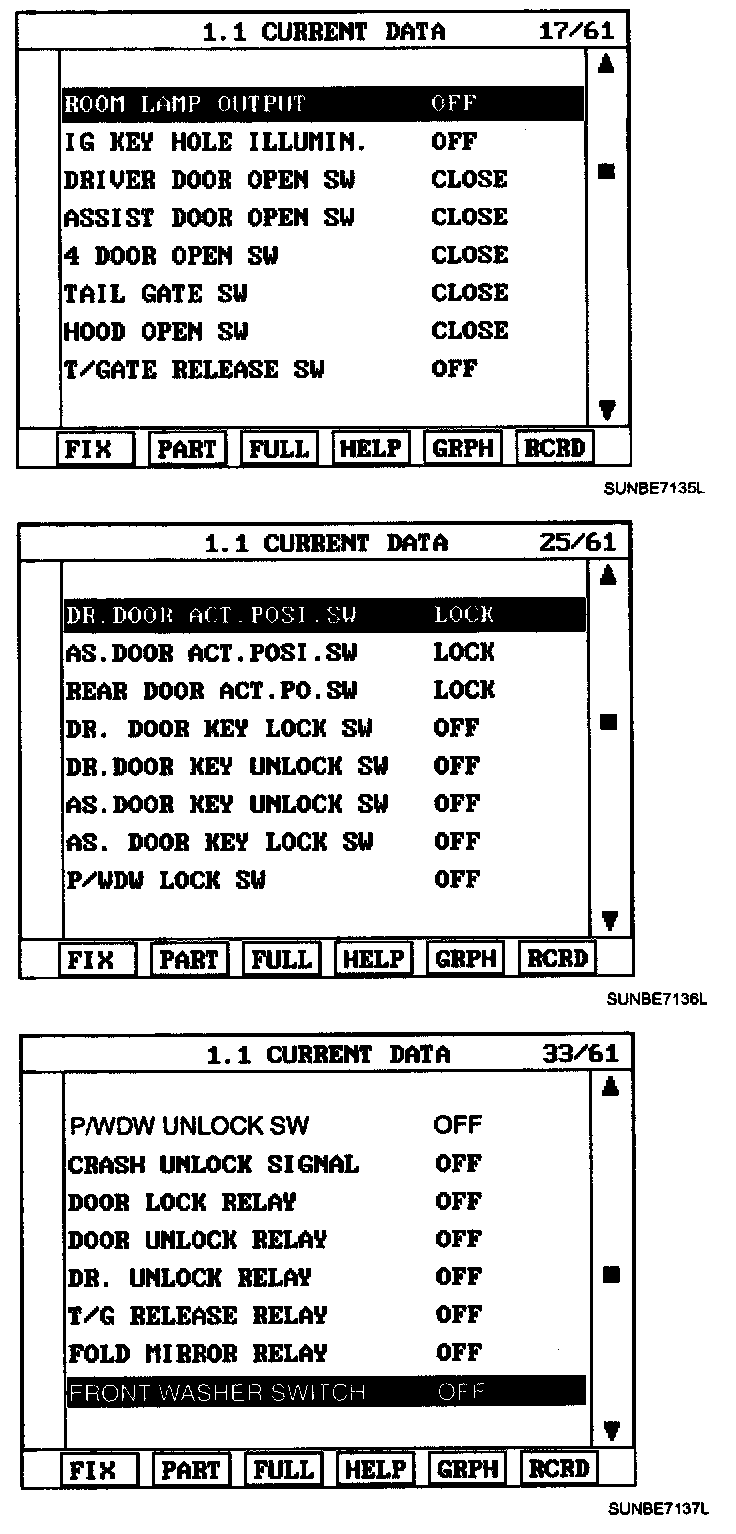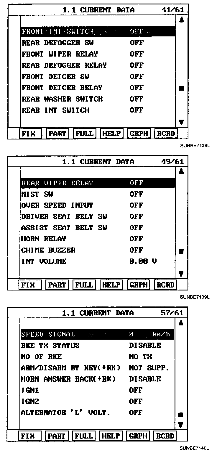 3. Select "Current data". if you will check current data of BCM. It provides power supply status, multi function status, lamp status, door status, lock system status, wiper, auto light status and so on.