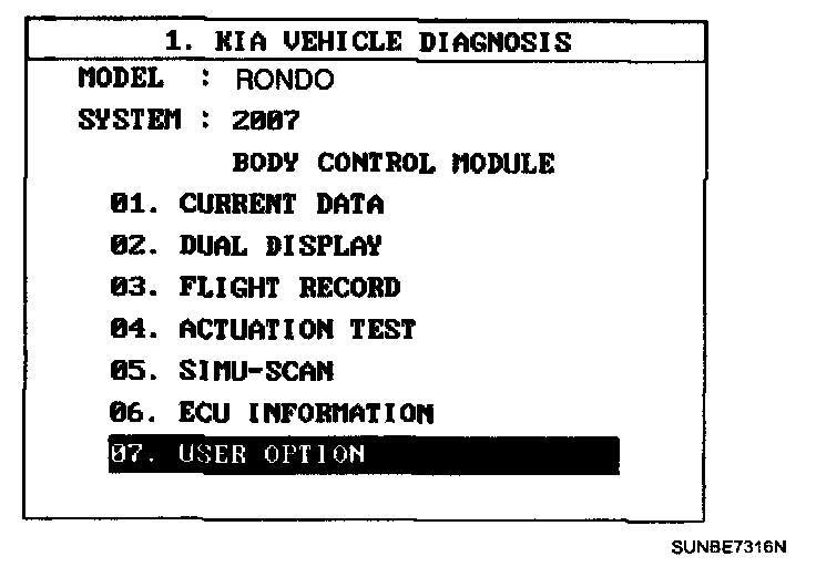 The BCM offers 4 items user option mode for a user convenience (AUTO DOOR LOCK, ARM/DISARM BY KEY, HORN ANSWER BACK, AUTO LIGHT CONTROL)