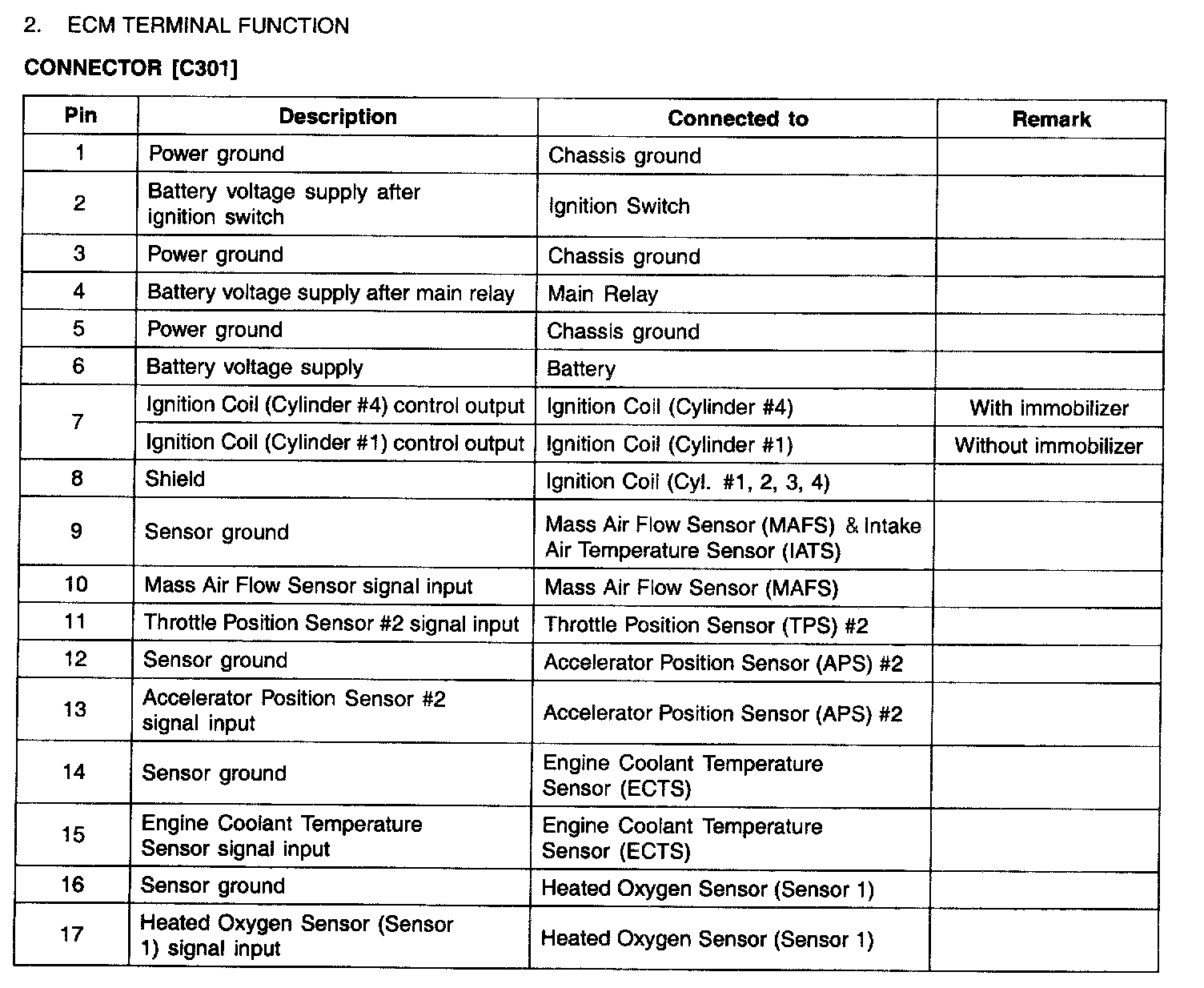 ECM Terminal Input/Output Signal - C301 (Part 1):