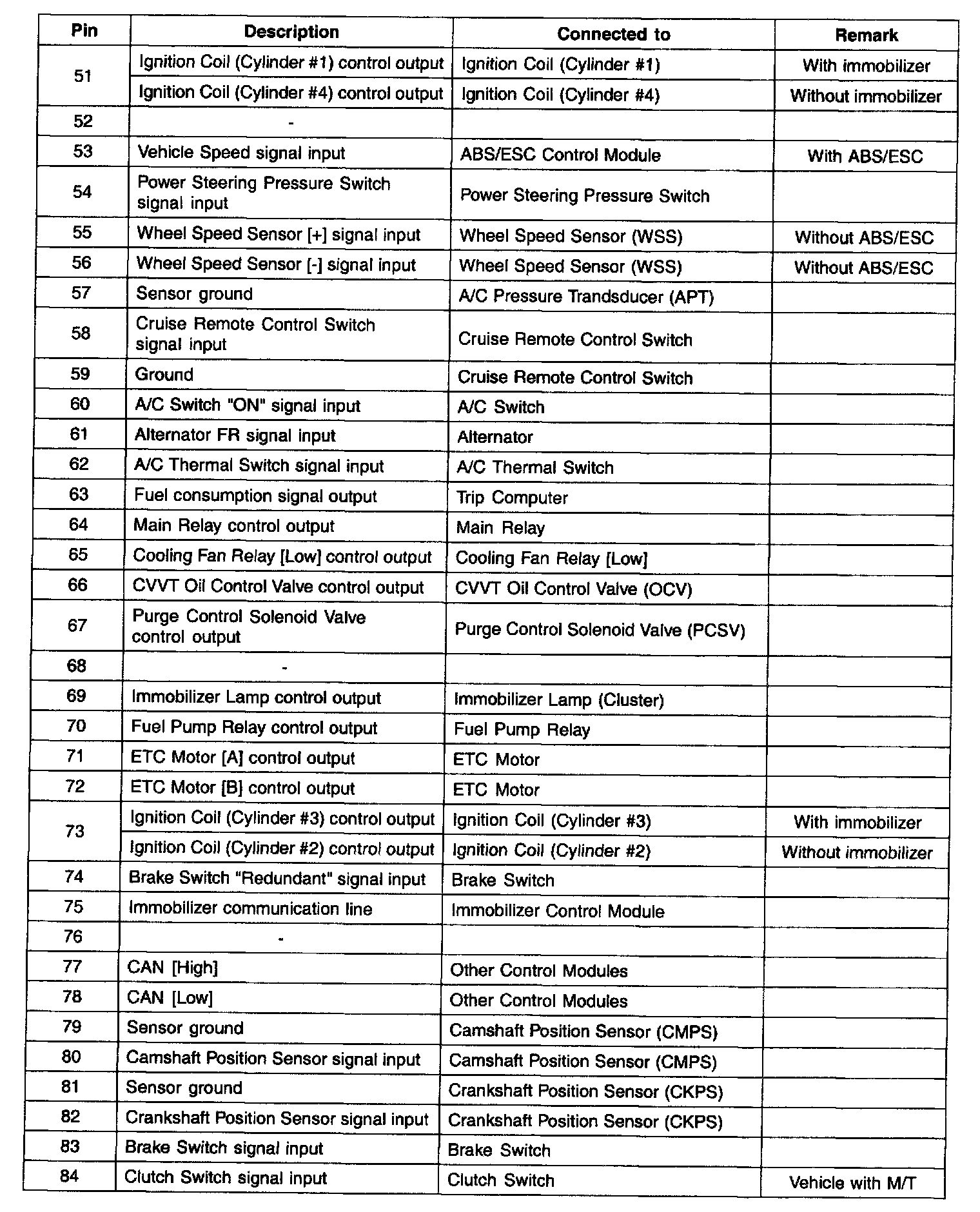 ECM TERMINAL INPUT/OUTPUT SIGNAL - CONNECTOR [C301]