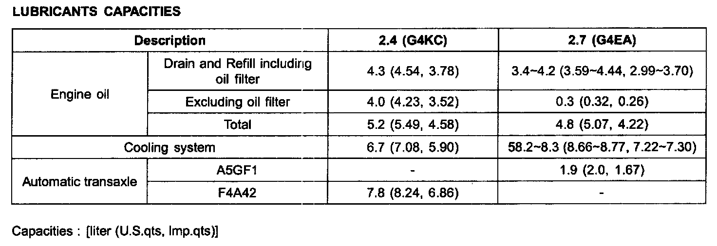 Lubricants Capacities: