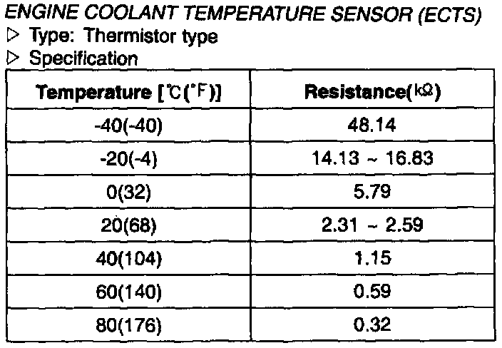 Engine Coolant Temperature Sensor (ECTS) - Specification: