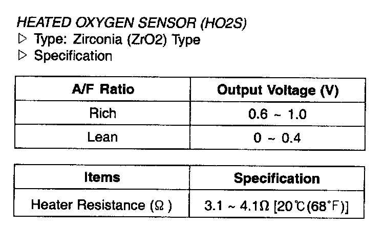 Heated Oxygen Sensor (HO2S) - Specification: