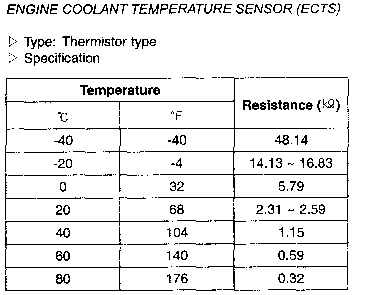 Engine Coolent Temperature Sensor (ECTS) - Specification: