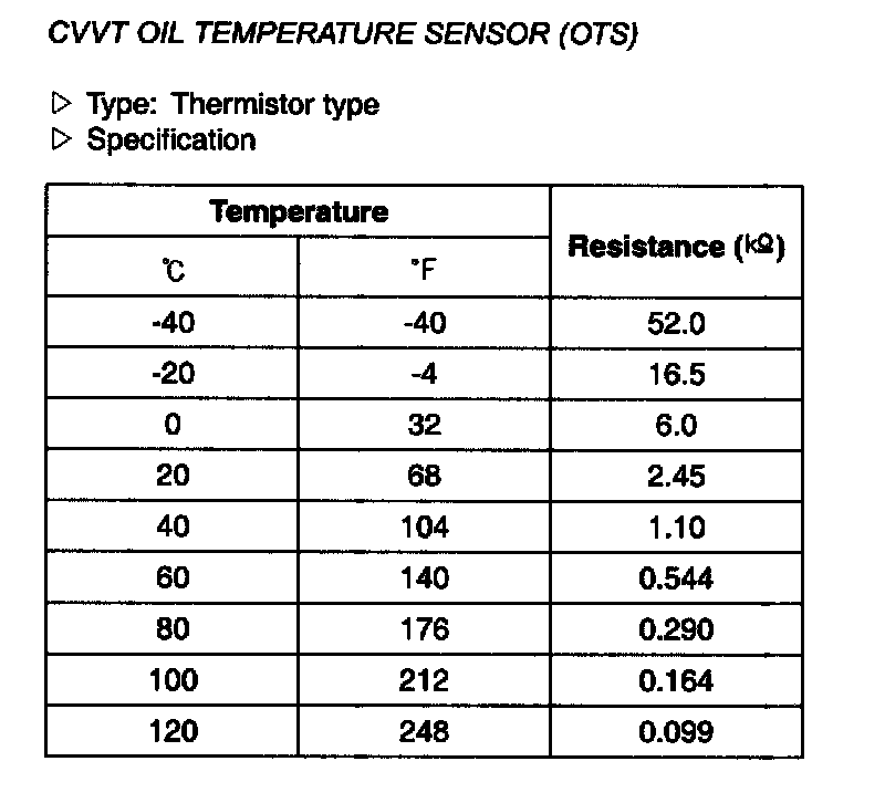 CVVT Oil Temperature Sensor (OTS) - Specification: