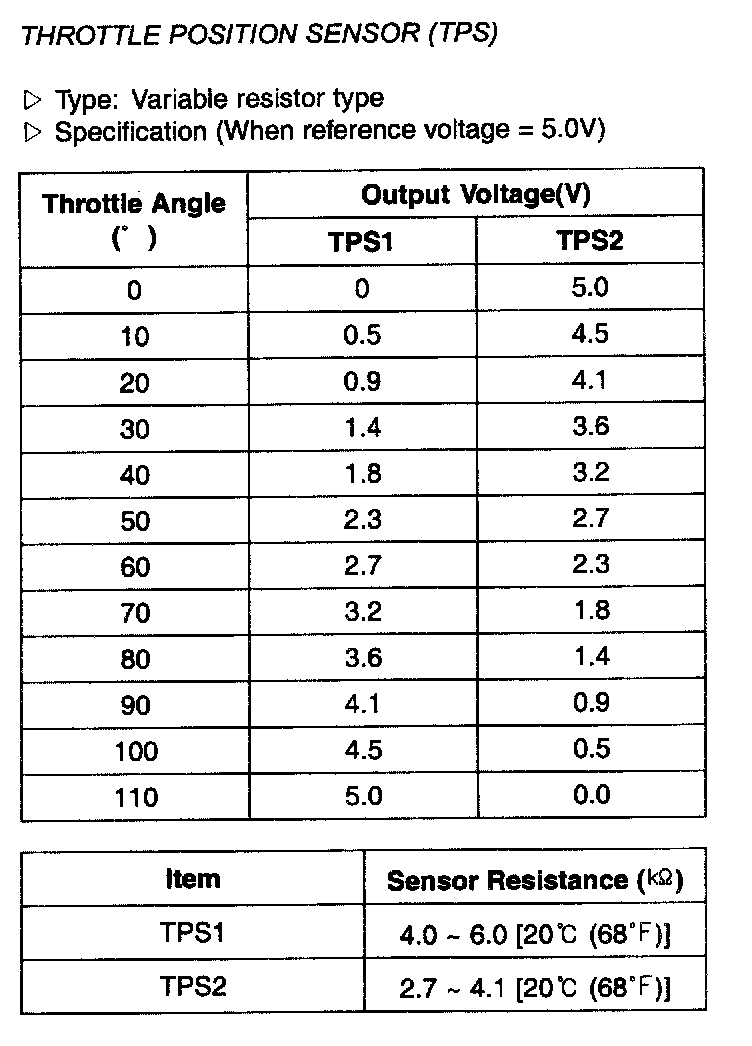Throttle Position Sensor (TPS) - Specification: