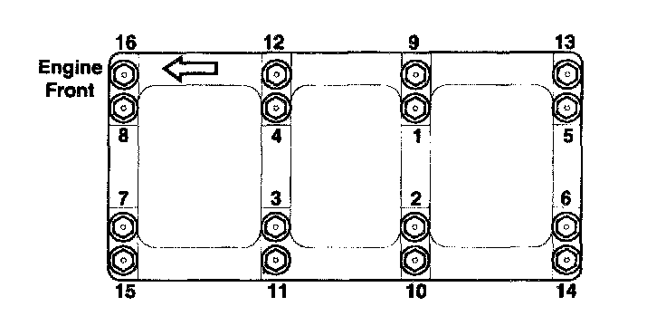 Install and uniformly tighten the bearing cap bolts, in two steps, in the sequence shown.