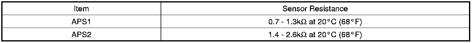 Accelerator Position Sensor (APS) is installed on the accelerator pedal module and detects the rotation angle of the accelerator pedal. The APS is one of the most important sensors in engine control system, so it consists of the two sensors which adapt individual sensor power and ground line. The second sensor monitors the first sensor and its output voltage is half of the first one. If the ratio of the sensor 1 and 2 is out of the range (approximately 1/2), the diagnostic system judges that a malfunction has occurred.